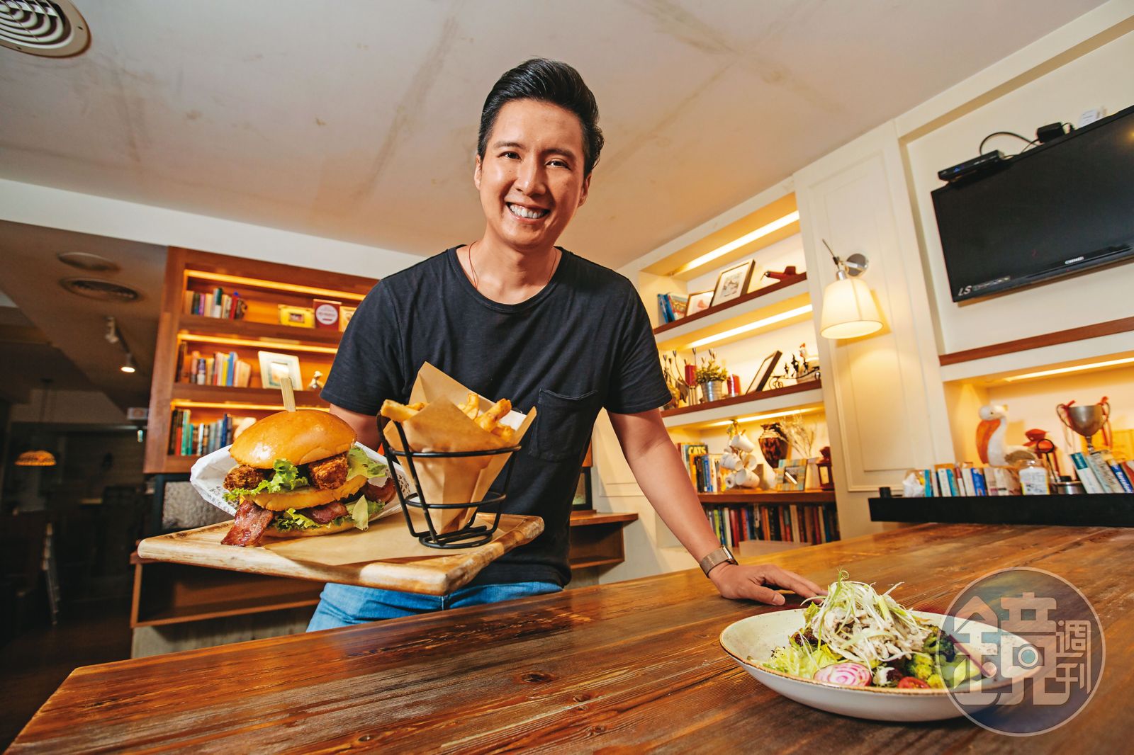 敦南店開業第4個月獲利,隔年底他又在內湖展店。「疫情爆發前,我們每年都要飛美國、加拿大做功課。漢堡一上來先拍照、看擺盤,然後主廚開始拆解、看內容物,接著是採購查台灣有沒有相似的原料可以做,財務再來抓成本跟定價。」他國外取經,再結合台灣飲食習慣變化,「每趟考察得從早上8點吃到深夜,這真的是職業傷害。有一年,我們推出一款廣達香肉醬歐姆蛋,就是加州比佛利山莊附近,一家墨西哥餐廳的辣肉醬歐姆蛋改的。」