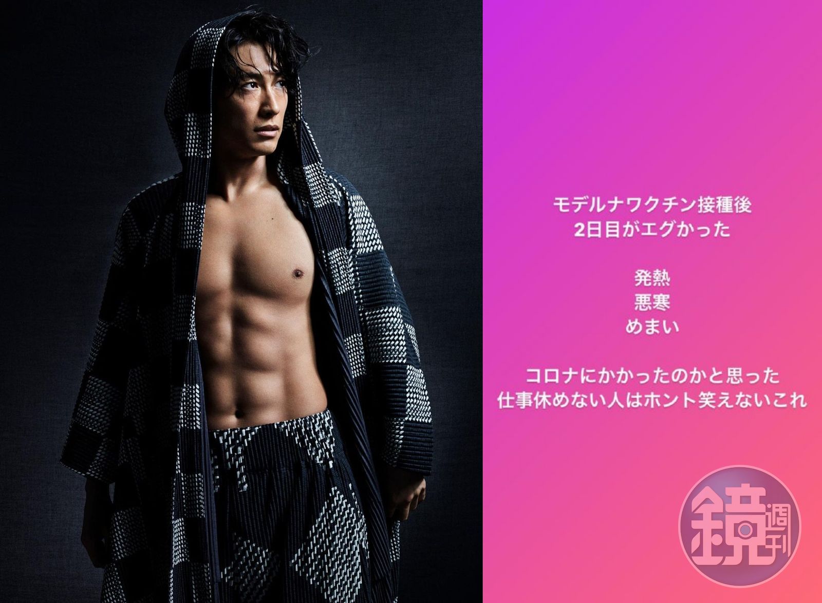 日星藤岡靛日前接種莫德納疫苗,出現身體不適的副作用,讓他感嘆因為工作無法休息,連笑都笑不出來。(翻攝藤岡靛IG)發布時間:2021.07.08 13:05 臺北時間