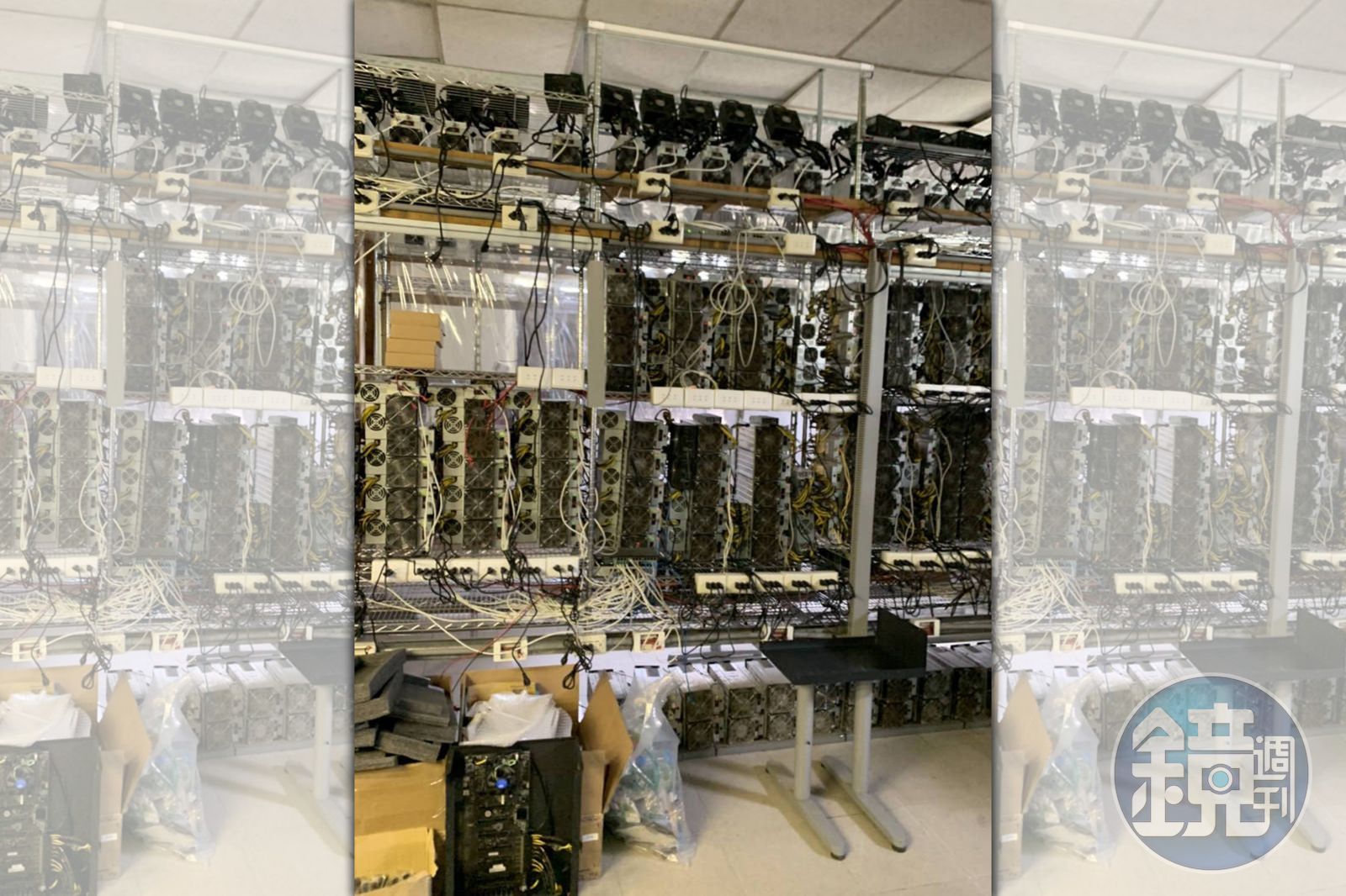 而台電發現,該物料堆積場用電量陡降,但電網資料顯示,該小區域用電量只增不減,去年7月派員電線路巡邏時,才發現電線被動手腳,進而會同警方查出,該處根本沒在堆積物料,而是比特幣「挖礦場」,該場有數百台礦機,24小時運轉,而且為了散熱,現場放置超大型電風扇,不停的吹!「礦主」不但偷接兩條台電電源線,還在礦場線路加裝不導電物件。
