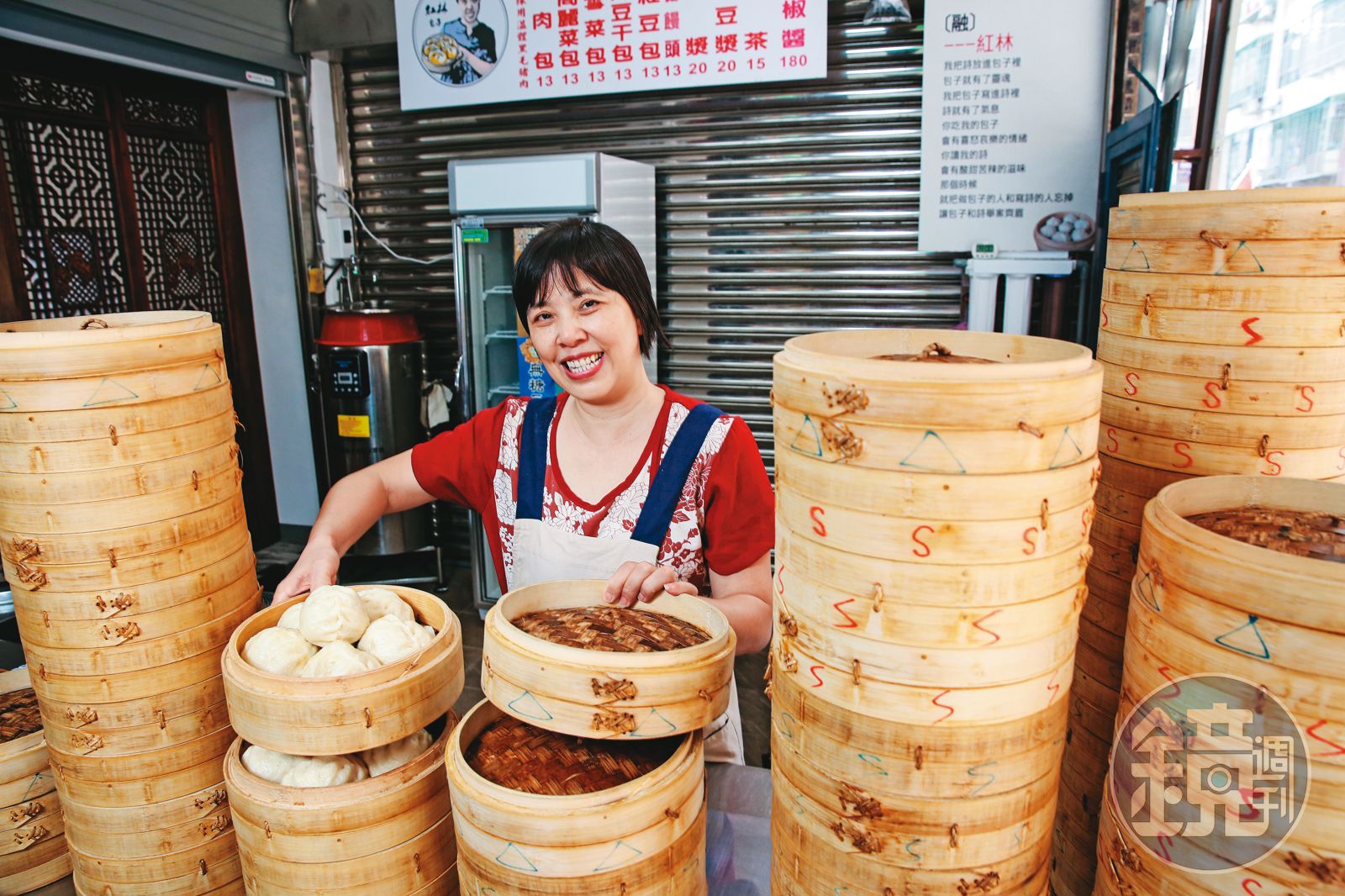 「我會賣包子完全是為了先生,他原本是台幹,後來工廠不賺錢老闆收掉,中年失業,每天閒晃也不是辦法,我總想著把他帶起來做點事。」夫妻倆5年前先在新北市新店擺攤,爽脆高麗菜、摻入花椒辛香料的辣豆干,與現熬萬丹紅豆泥等口味的包子,因料好實在,3個月就闖出名號,半年後租下店面,連美食家陳鴻都慕名而來,今年3月在中和另開分店。
