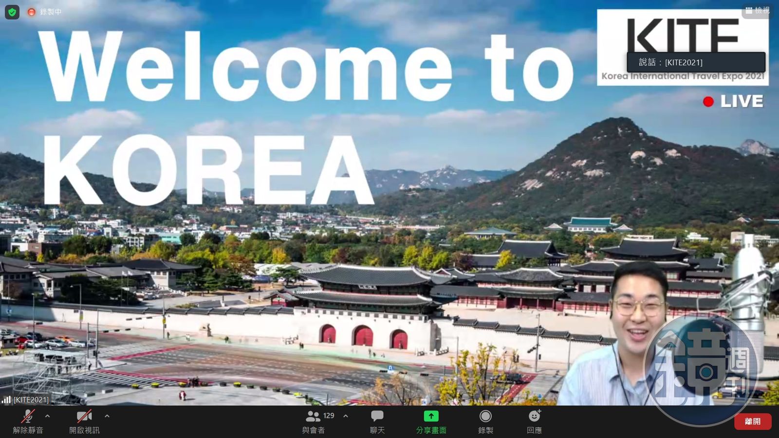 韓國觀光公社台北支社長李長儀線上與業者、媒體互動。(陳姿吟攝影)針對目前處於三級警戒的台灣,KITE 2021安排「台灣業者媒體韓國線上FAM TOUR」全中文導覽活動,包含旅遊業者、新聞媒體記者,參加人數超過180人。該活動由韓國導遊金斗成主持,從國外觀光客入境韓國的規範、機場檢疫流程及各觀光景點防疫現況詳細說明,比如入境韓國需填寫檢疫申報書、繳交72小時內的PCR檢測陰性證明,抵達韓國機場得經過機場人員安排進行核酸檢測,並下載自我檢康診斷的APP,希望透過完整的健康監測提供旅客真正的安心旅遊。