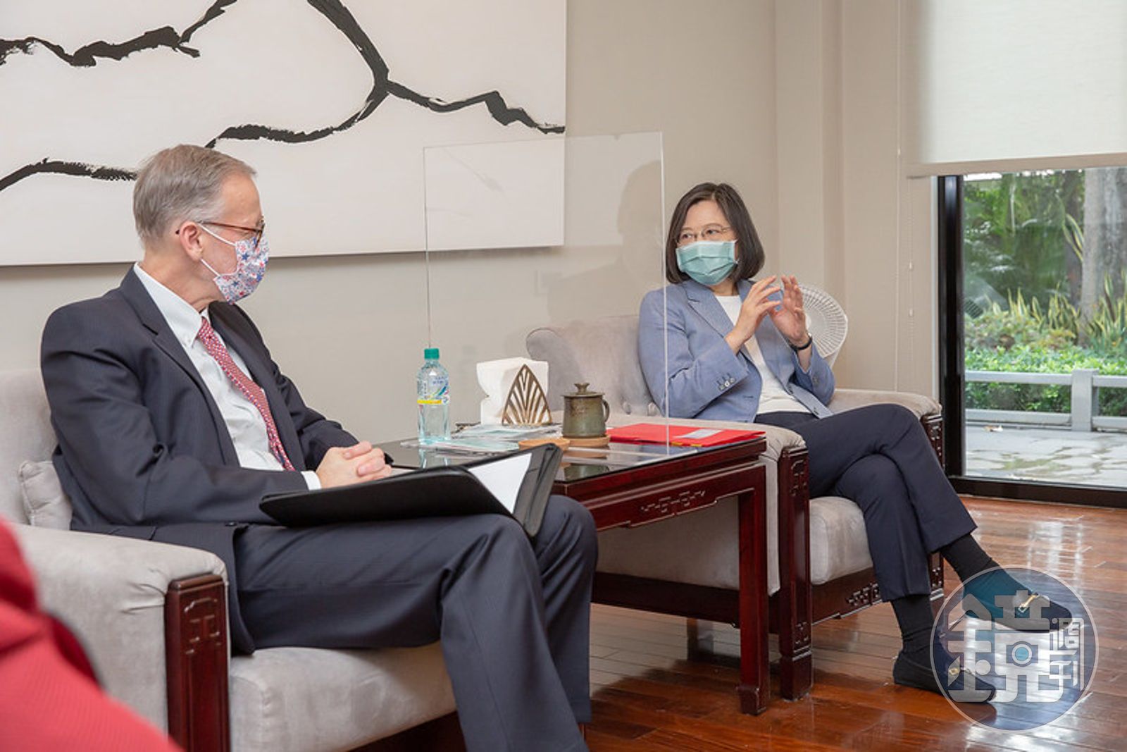 蔡英文昨日下午於寓所接見酈英傑,感謝在他的協助下促成美國政府提供我國250萬劑疫苗,及重啟台美「貿易暨投資架構協定」(TIFA)會談等重要進展,種種都是雙方長期致力促進台美關係的成果。蔡英文提及,過去3年來非常幸運有酈英傑一同經歷了許多關鍵時刻,她代表台灣人感謝酈英傑在台灣面臨困難時給予協助,祝福酈處長,也盼台美合作夥伴關係持續茁壯成長。