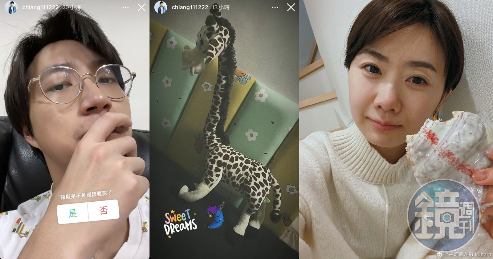 由於過去福原愛與江宏傑在實境節目《幸福三重奏》中,留下動物園甜蜜餵食長頸鹿的畫面,於是江宏傑那張長頸鹿玩偶照片,配上「晚安好夢」的可愛貼圖,就讓不少粉絲遙想過去夫妻兩人的恩愛時光,並且惋惜如今已成追憶。