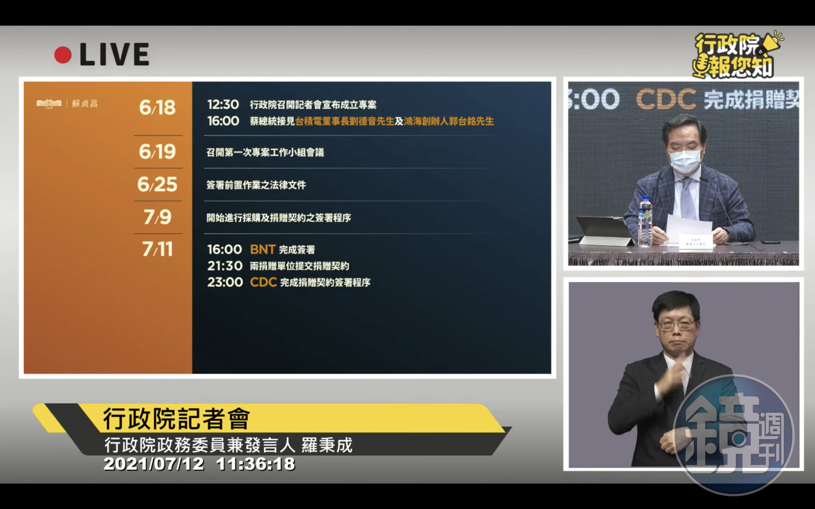羅秉成表示,這次的疫苗採購捐贈完全符合原廠製造、原廠標籤、直送台灣三原則,及台積電與鴻海的無償捐贈、中央統籌運用兩個共識,謝謝2單位出錢出力,也對專案小組日以繼夜完成捐贈契約簽署程序表達敬意,若順利進來,政府將承擔後續一切行政作業,以達成本專案捐贈目標。