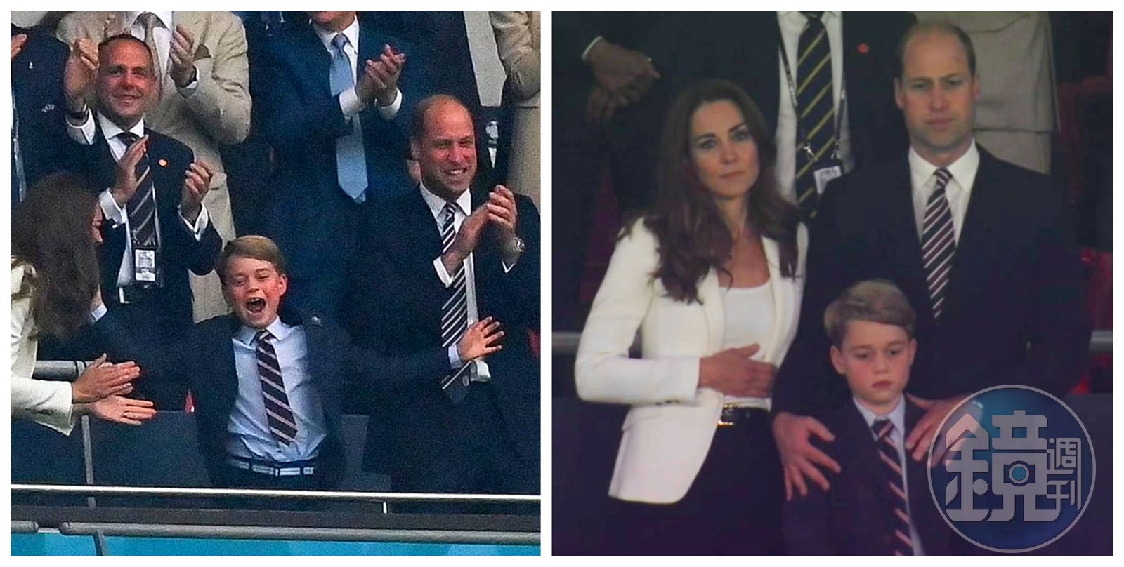 冠軍賽後,小喬治被拍失神落寞,媽媽凱特摸摸他的頭安慰,面色凝重的爸爸威廉也把雙手放在兒子的肩上,給予他支持。