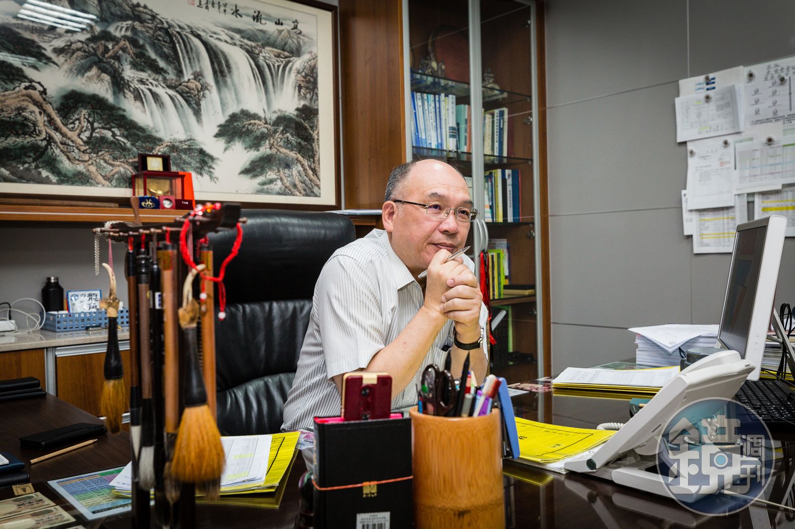 辦公室內的東西也得整整齊齊,桌上書籍、雜誌擺放方向都是同一角度,擔任特助的女兒許雅涵也不能輕易亂動,「他的桌子不能動,動了要放回原位,他都會發現。」
