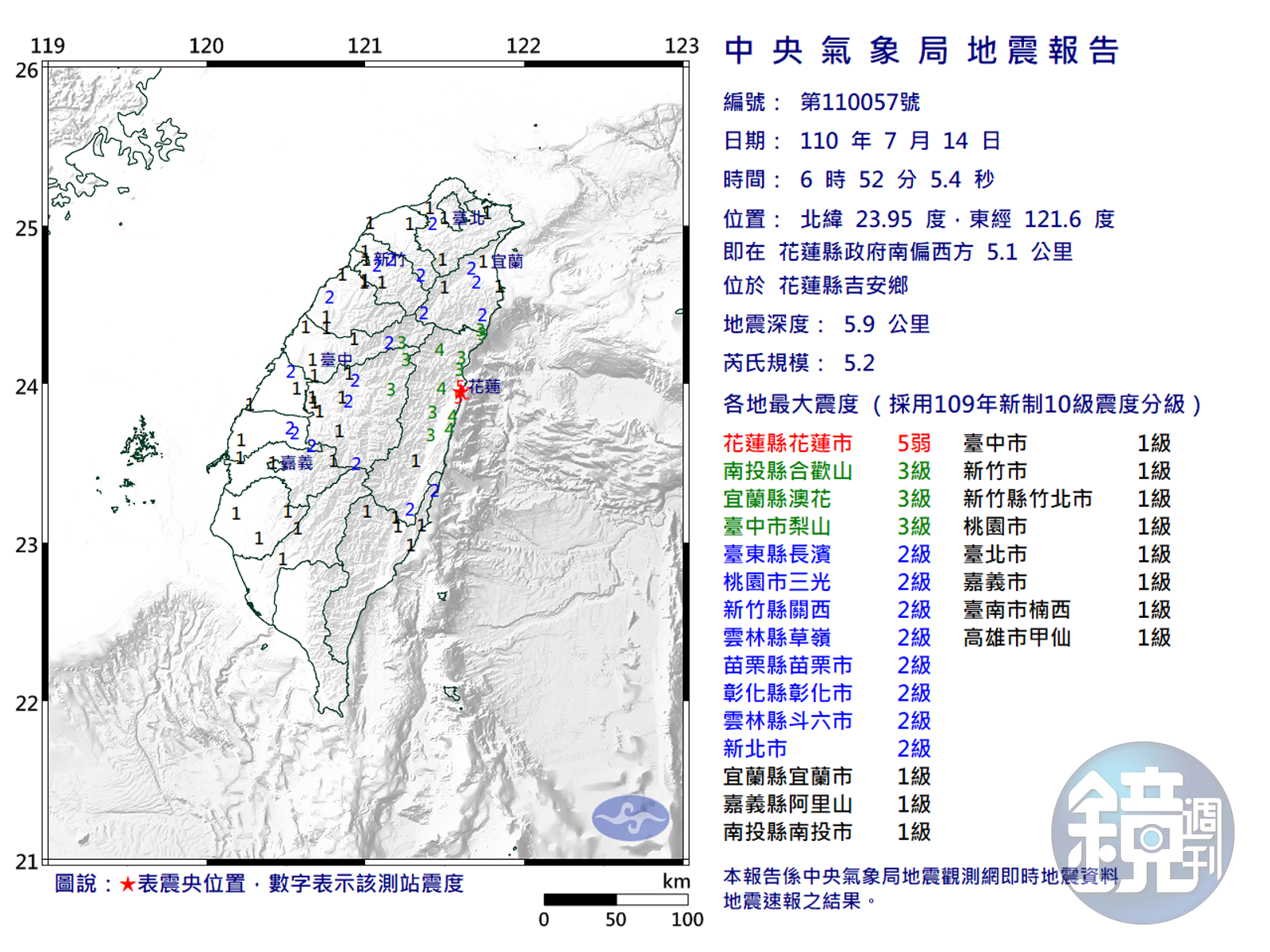 花蓮今早發生芮氏規模5.2地震後,後許還出現20多起餘震,氣象局也為此召開線上記者會說明,地震中心主任陳國昌強調,在這裡以往雖然也有發生群震的狀況,不過並未像這次異常「多又分批」,算是比較罕見的狀況。他也預估分析,餘震還會持續一週、甚至一週以上,也不排除餘震會達到芮氏規模5.0。