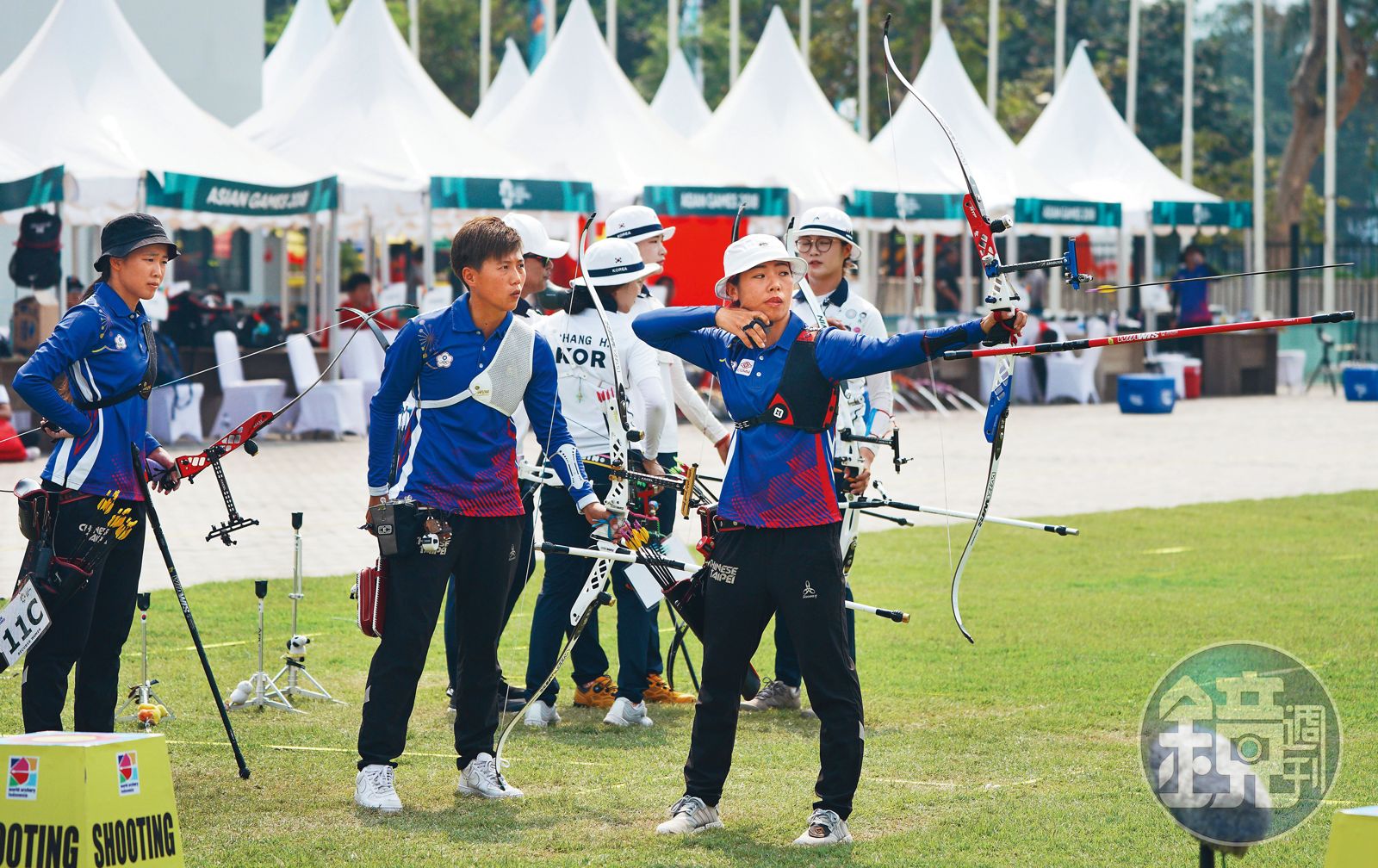 射箭隊選手:湯智鈞、鄧宇成、魏均珩;雷千瑩、譚雅婷、林佳恩