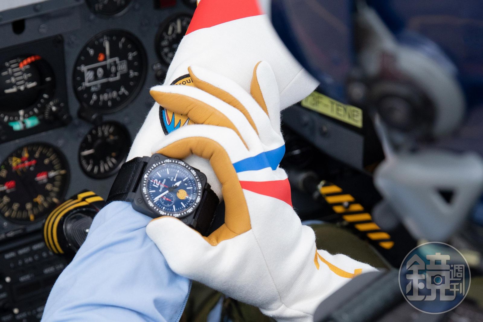 BELL & ROSS在今年初宣布成為法國巡邏兵飛行表演機隊的合作品牌,這個機隊成立於1953年,是法國空軍旗下的花式飛行表演機隊,在海外代表法國空軍、肩負起法國與法國航天工業大使的角色。在BELL & ROSS推出的聯名限量錶中,最醒目的特徵便是9點鐘位置的機隊徽章;至於藍色面盤嶼紅色的計時指針,加上白色的指針與刻度,這個配色也與飛行機對的顏色相互呼應。