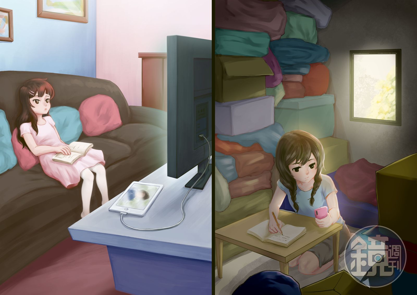 早上9點,手機那頭傳來班導師叨叨絮絮提醒著作業注意事項的聲音,間或穿插幾句斥責,6年級的小萍(化名)一手拿著手機,一邊在客廳亂竄,翻箱倒櫃地搜尋原子筆的蹤影。