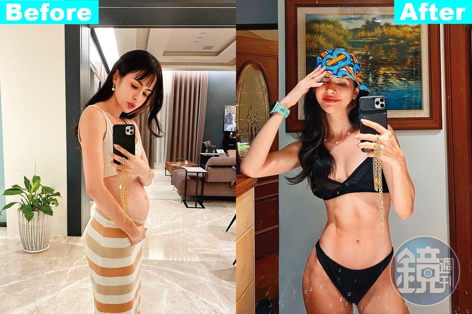 雷艾美手捧「微魚肚」害了了(左圖),隔天恢復冰塊肌(右圖),她自豪說︰「我是魯夫,伸縮自如。」(翻攝自雷艾美IG)發布時間:2021.07.24 05:58 臺北時間