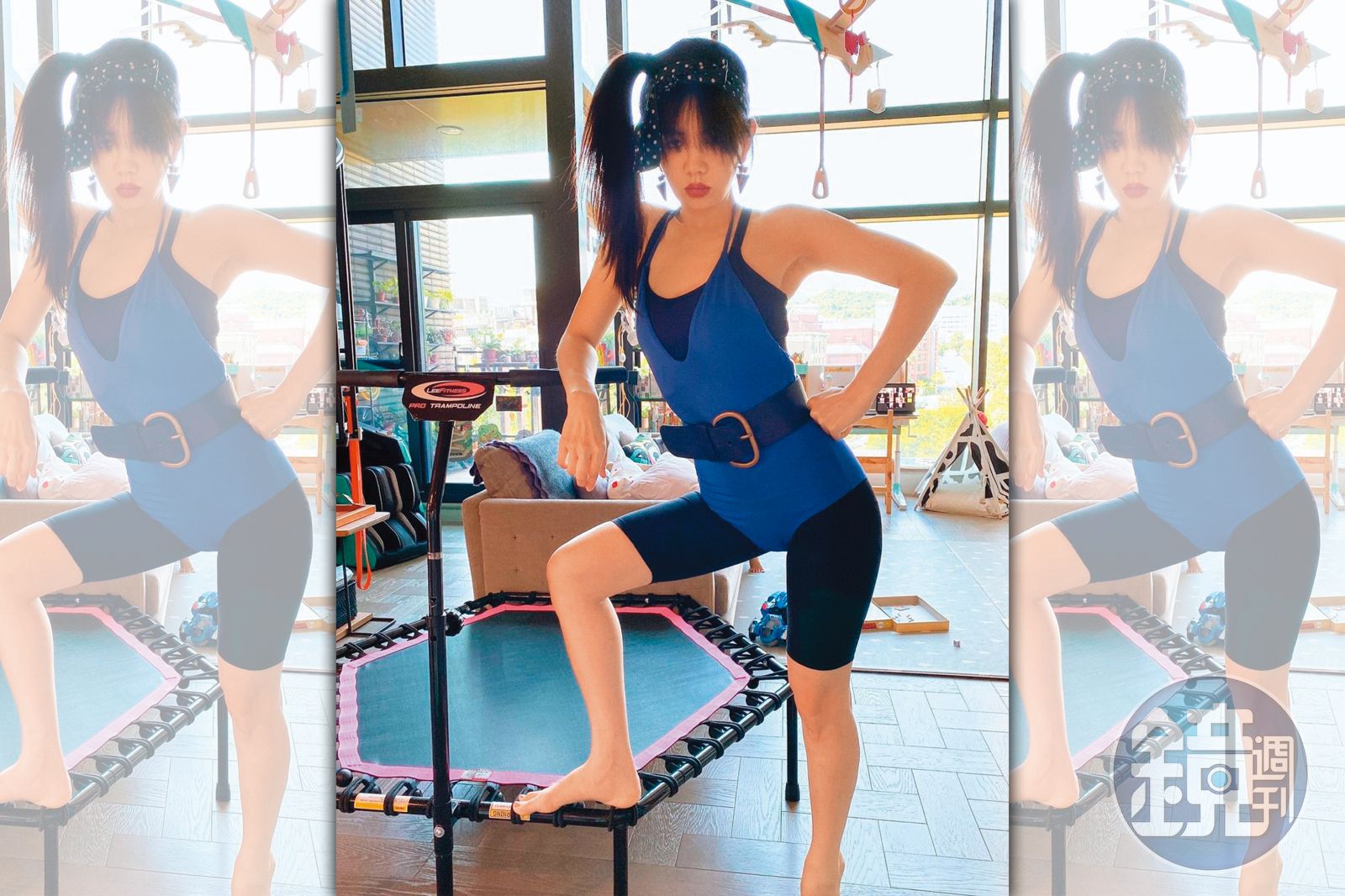 因三級警戒而長期關在家有多可怕?看Ella陳嘉樺就知道-還沒微解封,就先「微姐瘋」了!只見她穿上連身衣,戴上微誇張的耳環,臉上濃妝豔抹,看起來微瘋。原來這是Ella跳床運動的主題造型,她特地扮成醬,向1980年代的流行樂女王瑪丹娜致敬,但Ella也自嘲說:「我怎麼比較像摔角選手?」她強調雖然宅在家,但運動也不能停;其實Ella平時都有微練,看這「胸肌」就知道了!(微~)