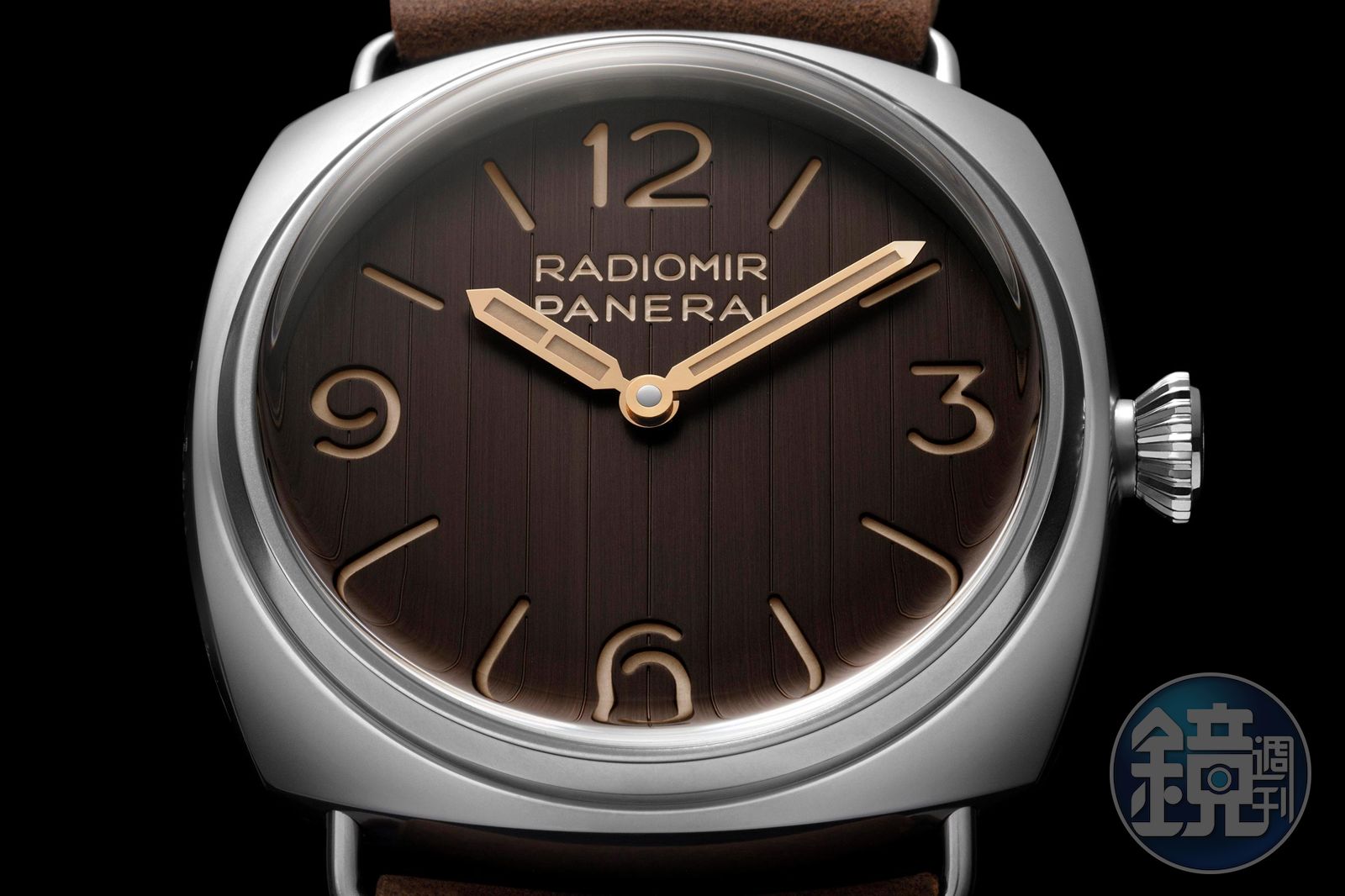 在沛納海經典三明治面盤上頭,斑駁的棕色加上直條紋路,便是來自於帆船的柚木甲板作為設計靈感,至於錶殼側邊Eilean字樣的鐫刻,以及下方的特殊紋路,則同樣來自Eilean古董帆船船身上的龍紋徽章。錶帶部分,除了是義大利托斯卡尼所製作,精心點綴的縫線更取經自Eilean號桅杆上的帆繩。後底蓋上有Eilean與1936字樣。這款Radiomir Eilean限量499只,呼應 Eilean號的帆號。