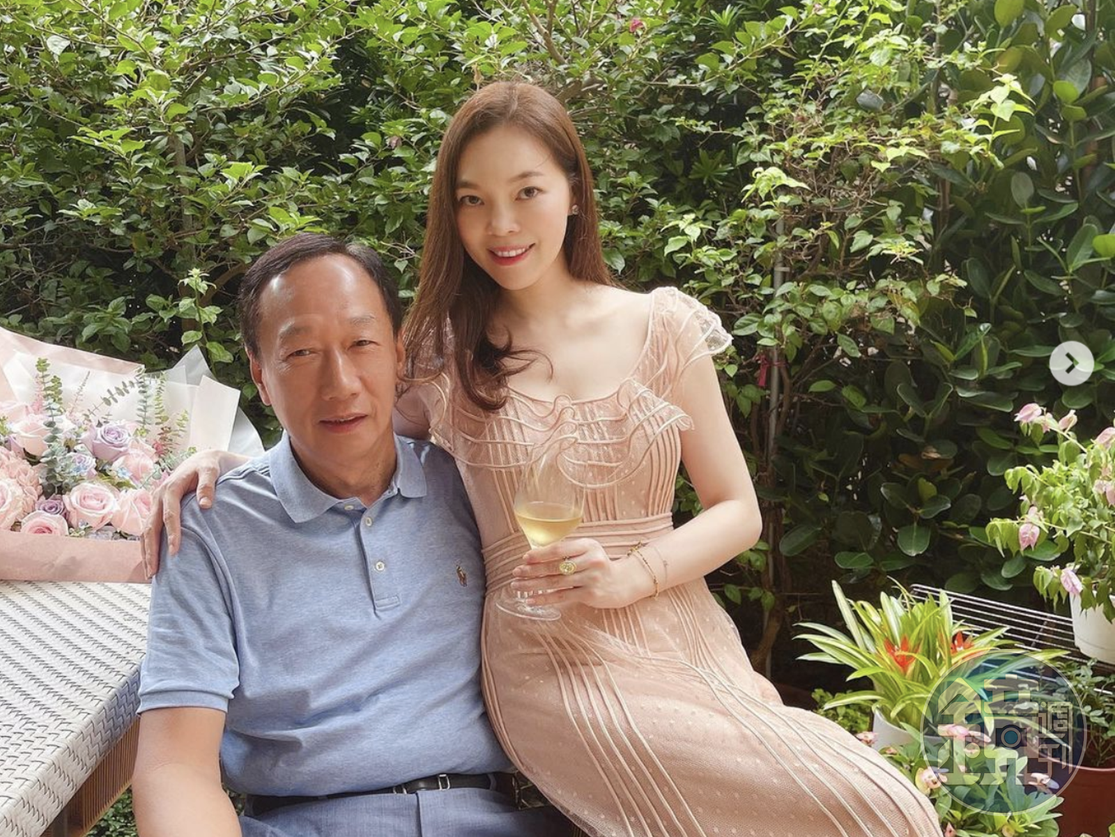 曾馨瑩昨晚在IG上傳與多張鮮花美酒照片,其中一張她手搭在郭台銘肩上,另一張兩人拿著花束相視而笑,十分恩愛。曾馨瑩寫道:「13年了~花邊婚又稱Lace wedding,象徵『堅韌且美麗』,簡單的幸福,除了我們,還有3個寶貝讓我們的人生更美好,珍惜而感恩。」