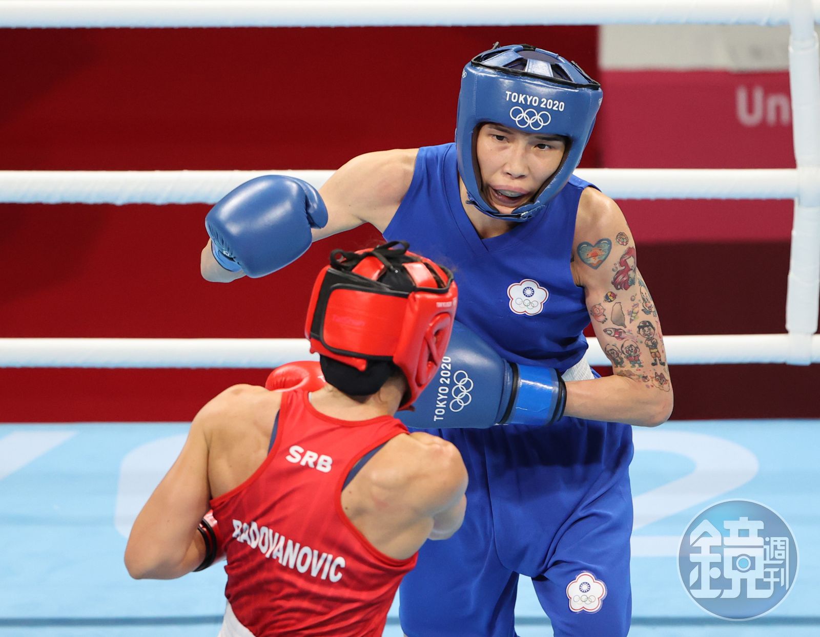 拳擊女將黃筱雯於7月29日以身高優勢5比0完勝義大利選手索倫提諾(SORRENTINO Giordana),挺進8強。 今天黃筱雯在8強賽中,遇上塞爾維亞選手妮娜拉多瓦諾維奇,在第一回合就利用身高、臂展優勢以4個10分領先對手;第二回合更是增加出拳頻率,頻頻命中對手,以5個裁判都給10分保持領先;第三回合控制全場節奏,最後5位裁判再次給出10分,黃筱雯以5:0拿到4強賽門票。 黃筱雯今年首次闖進奧運就打進4強,因拳擊賽制關係,已確定有獎牌進帳,這也是我國拳擊史上第一面獎牌。