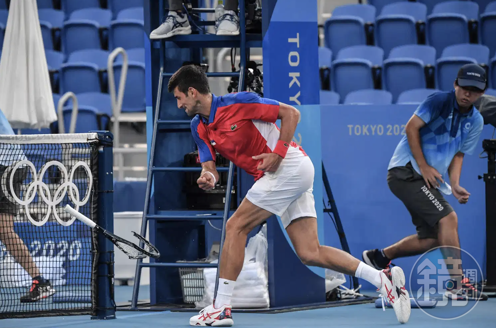 來自塞爾維亞、充滿愛國情操的喬科維奇,在本屆奧運參戰男子單打與混雙賽事,連續4天上演「一日雙戰」戲碼,加上東京炎熱天氣摧殘,體力明顯吃不消。銅牌戰中,喬科維奇與布斯塔鏖戰三盤,無奈狀態不佳,面對失誤、比數落後,喬科維奇催促球僮、摔拍,甚至一個暴怒就把球拍丟到觀眾席,場面相當失控。落敗後,喬科維奇為失態行為道歉,「畢竟我們都是人,有的時候很難控制情緒」。