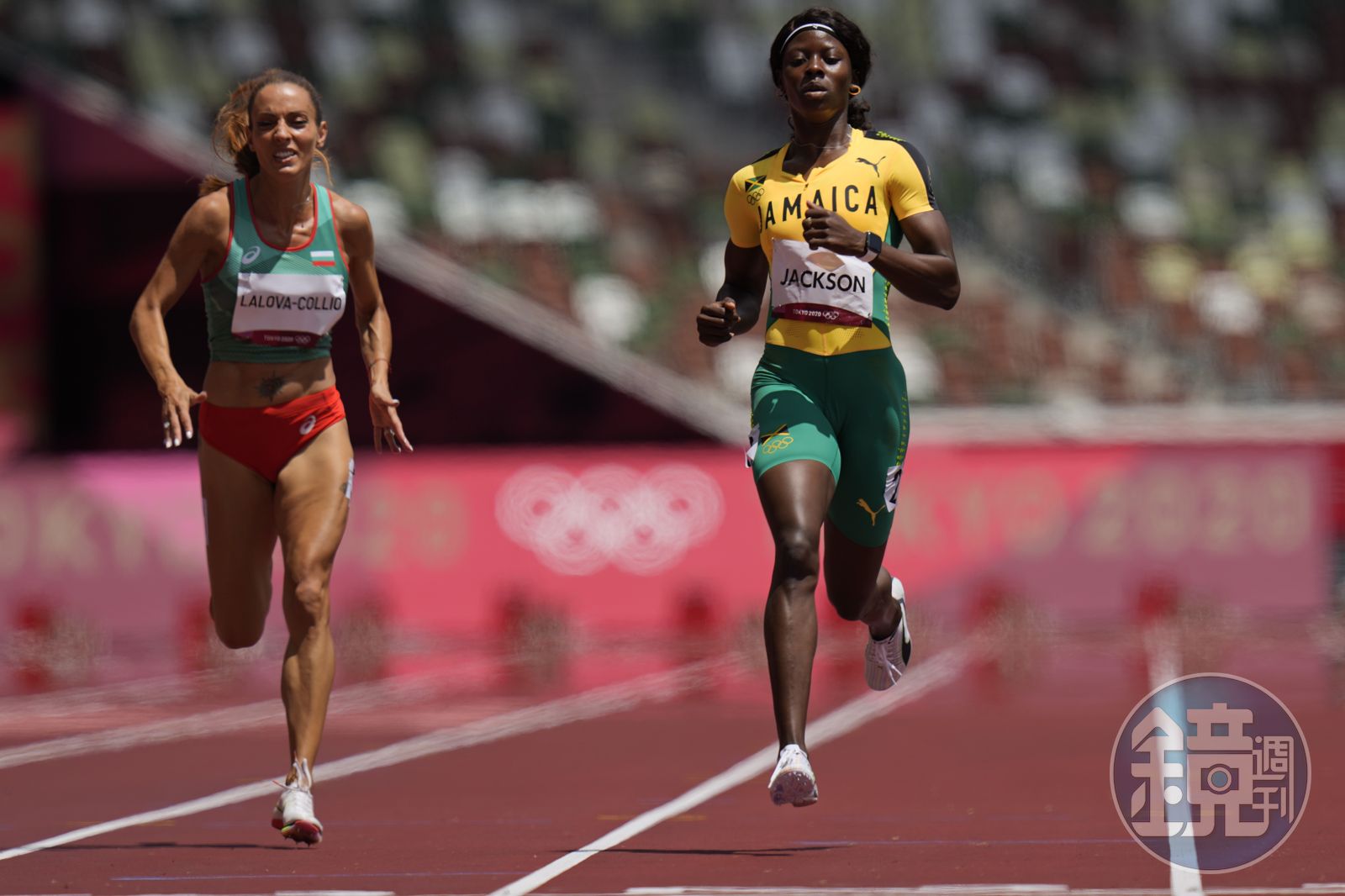 【2021東奧】牙買加才包辦100M金銀銅 她200M預賽臨門減速爆冷出局 牙買加田徑好手傑克森(右)在200公尺預賽抵達終點前減速,意外無緣準決賽。(東方IC) 發布時間:2021.08.03 15:54 臺北時間