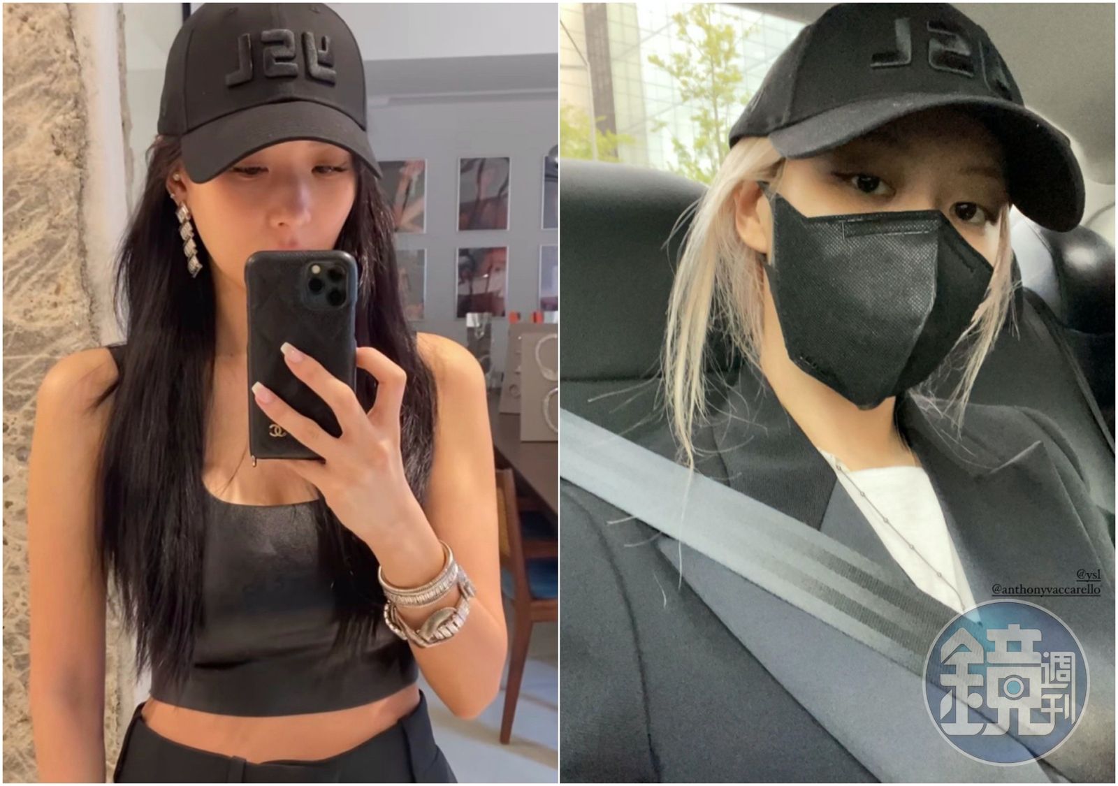 (左起)孫芸芸、ROSÉ朴彩英皆以黑色服裝與七夕限定黑色棒球帽搭配。(合成照片,SAINT LAURENT提供)發布時間:2021.08.03 07:16 臺北時間