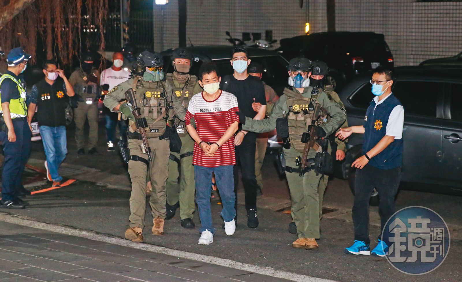 同一時間,刑事局也在新北市雙和、八里等地拘提多名嫌犯,一共帶回土方公會理事長王建翔、美鷹會會長劉克堅、劉克堅左右手劉宗銘、王鑫前司機李冠緯等4人到案。