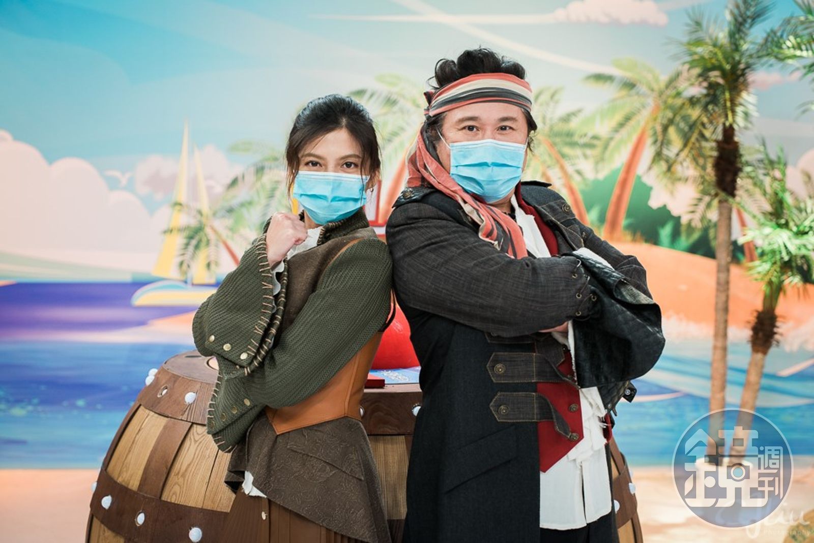 主持人胡瓜(右)、瑪莉亞(左)戴著口罩開心復工。(衛視中文台提供)發布時間:2021.08.06 19:24 臺北時間