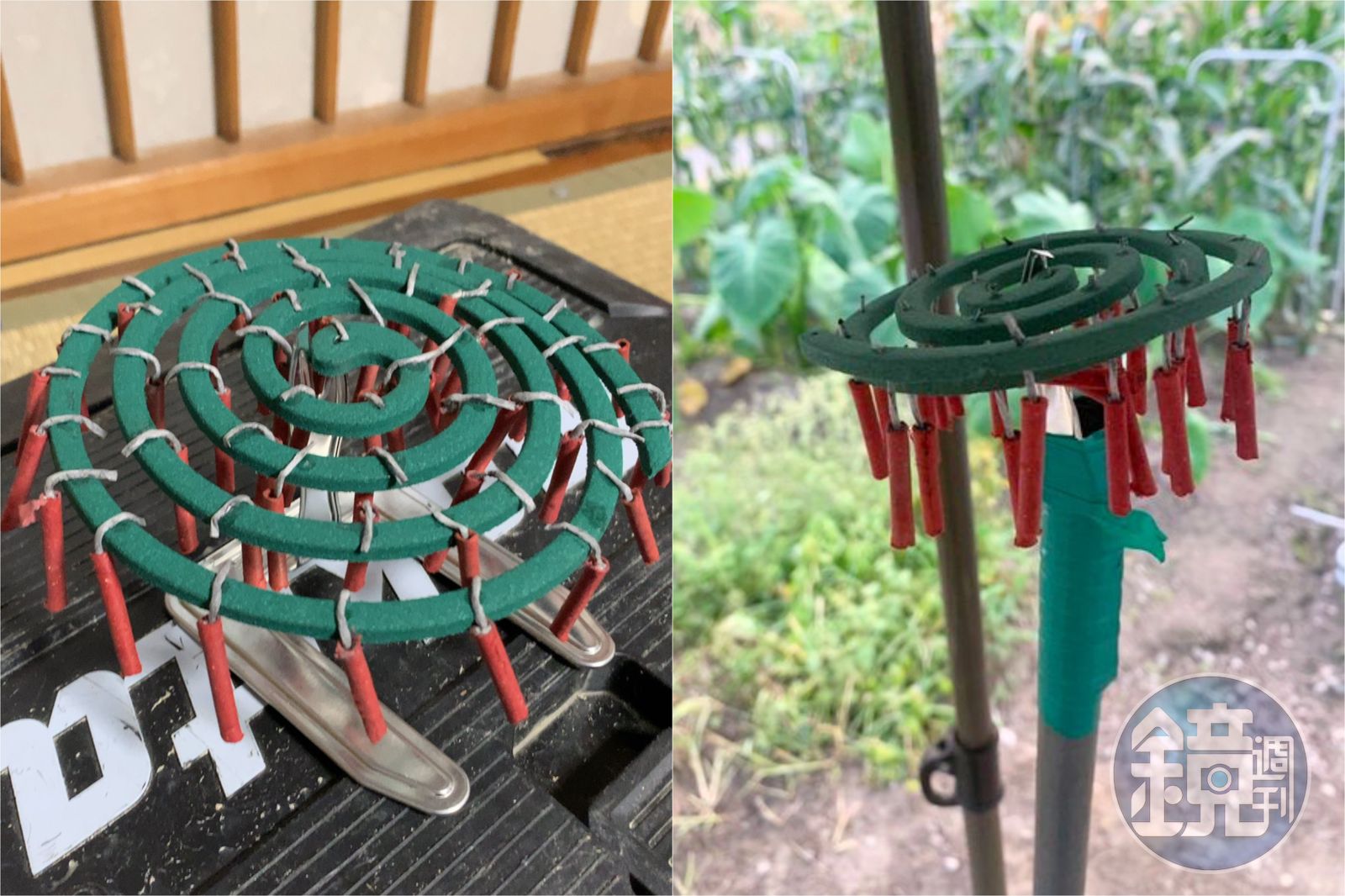 鞭炮爆炸聲響確實能驅趕動物,但是當鞭炮爆炸時,原先待在蚊香上的鞭炮也會被震了下來。於是,該名網友改良裝置,在蚊香上用鑽頭打出多個小洞,接著將鞭炮引線穿過洞口吊掛,順利完成最新版本的「蚊香定時炸彈」。