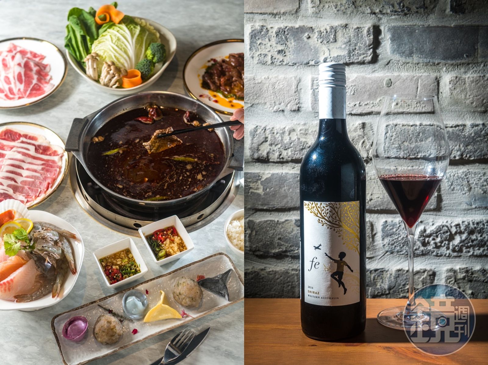 我試喝一口滾沸的麻辣湯,香辣卻不衝嗆,入喉溫潤帶有甘甜味,接著夾片「川味果香塔塔嫩肉」在湯裡輕涮幾下,嘗來滑嫩、吸飽辣湯的辛香。楊少華建議我可以搭配「澳洲地理灣紅酒」,酒感輕薄、結構簡單,既不搶味,酸度又能解油膩。