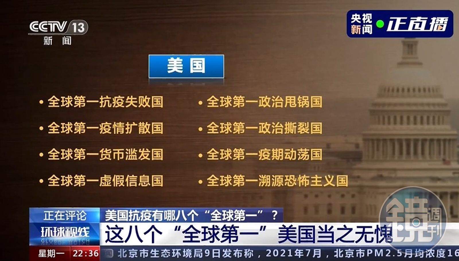 據中國官媒報導,中國人民大學重陽金融研究院、太和智庫和海國圖智研究院三間機構,在昨(9號)聯合發表「美國對抗新冠肺炎的真相」(The Truth about America's Fight against COVID-19),在二萬多字的報告中,分析拜登政府因高度政治化的黨派偏見、違背科學精神的錯誤防疫措施,造成全球死傷慘重,嚴重破壞社會安危,文中亦強調:「這是全球首份揭露美國抗疫真相的報告。」