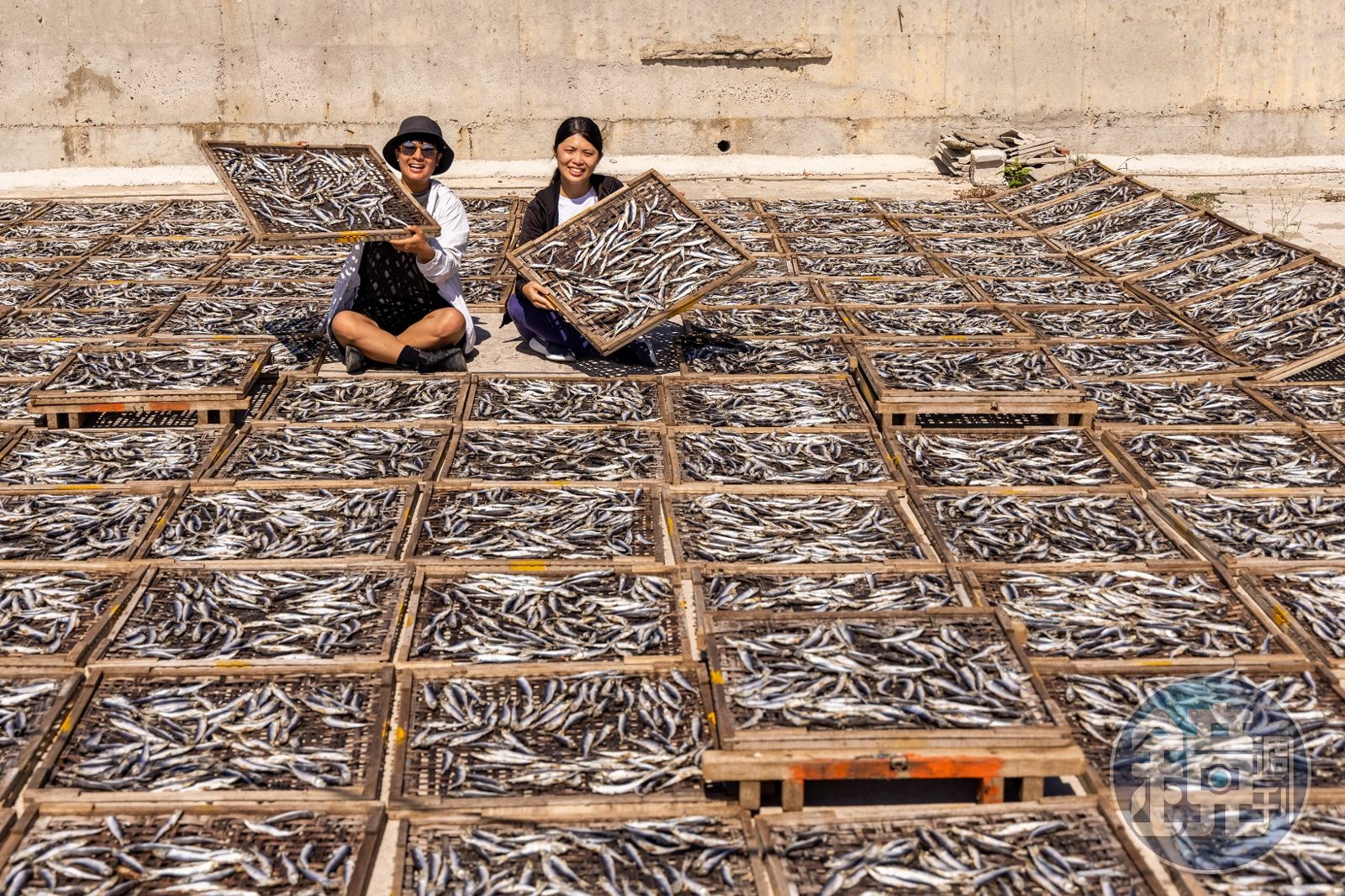 「早年因為漁獲多,需要保存但沒冰箱,鹽漬、曬乾是最常見的做法。」舊時代無冷凍設備,魚乾需曬至比今日更乾燥。澎湖最早的處理方式是用每村都有的魚灶進行加工,曬魚場是近半世紀以來才有的處理方式,童一行看起來規模不大,不過一次能做十噸以上漁獲。