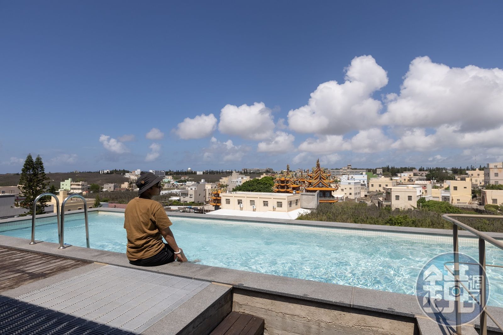 「我們屋子裡,沒有任何一間房間是相同的。」以腦波作為建築底稿,房間的大小、高低也完全不同。隱藏在餐廳旁,有個沒有房號的房間,是民宿最貴的VIP房。這裡藏有一座澎湖少見的高空私人無邊際泳池。