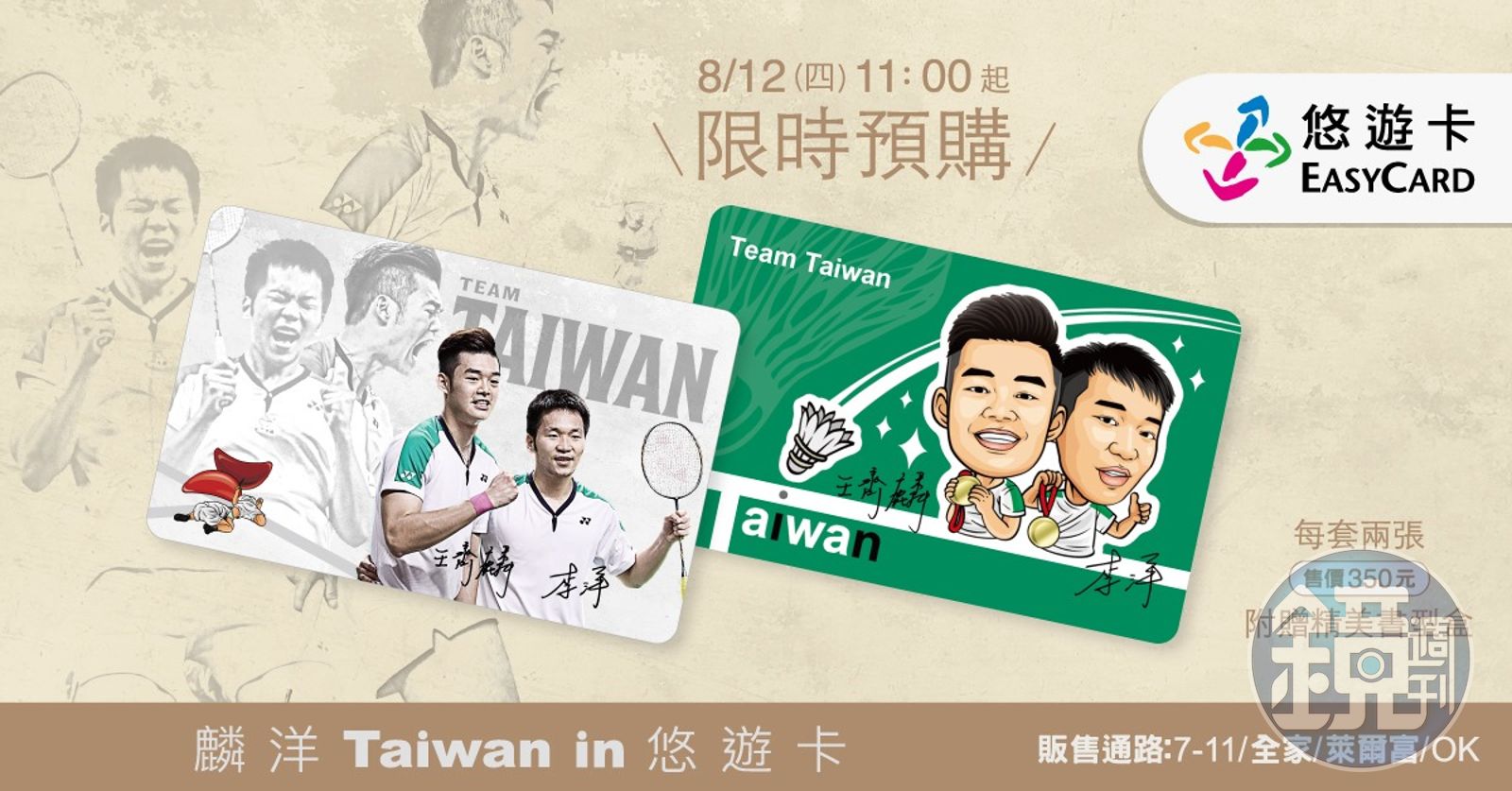 悠遊卡公司昨推出「麟洋配」奪金紀念悠遊卡,設計被網友吐槽像長輩圖、似顏繪像明星三缺一畫風,也有網友直言「學學人家一卡通好嗎」。對此,李洋則留言緩頰「我覺得很可愛喔!設計我們都有先看過,請大家多多支持」。