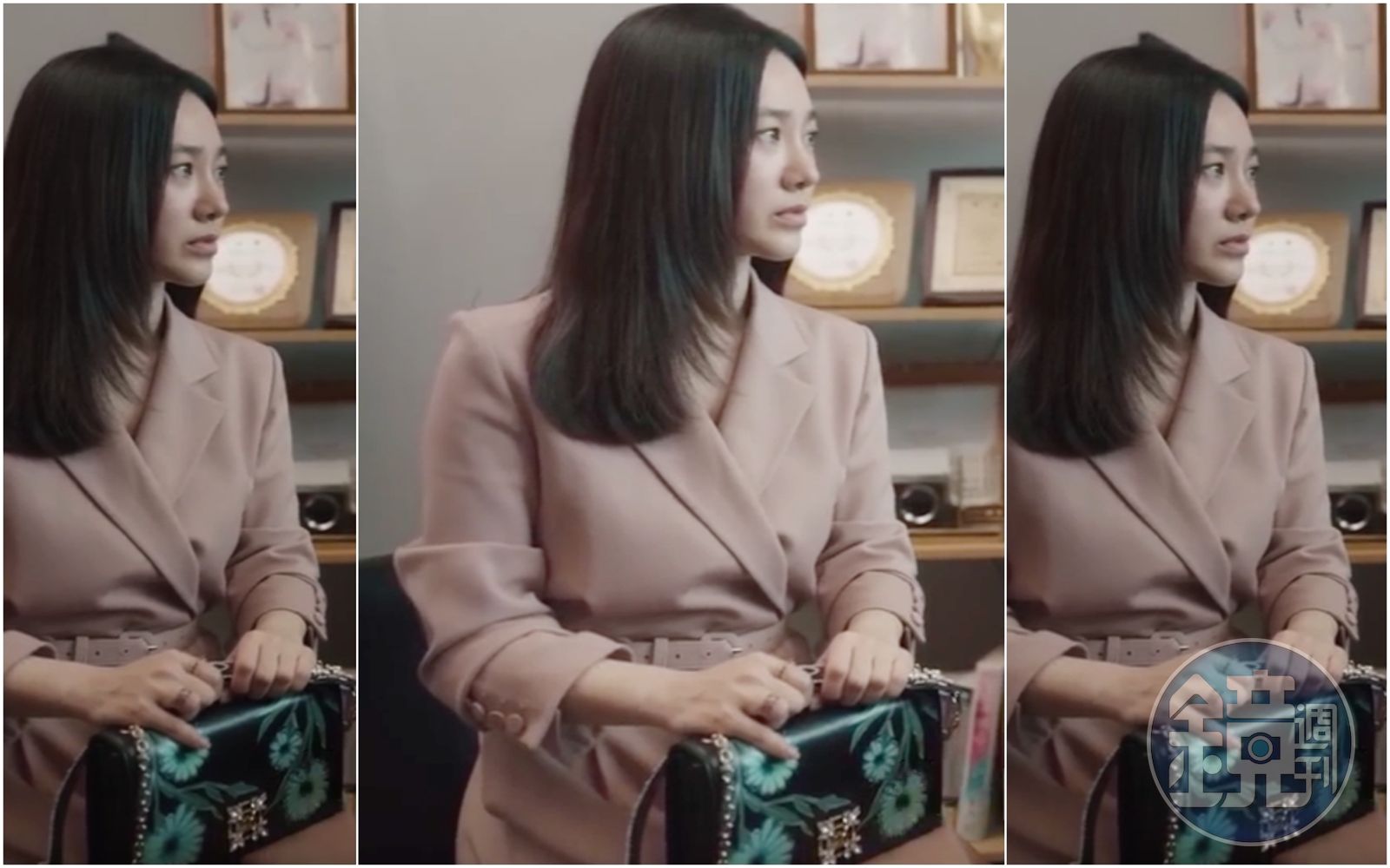 朴柱美去分居丈夫醫院診間給對方提出警告時,Miss Vivier Blossom包款就放在大腿上。(翻攝自網路)發布時間:2021.08.12 09:32 臺北時間