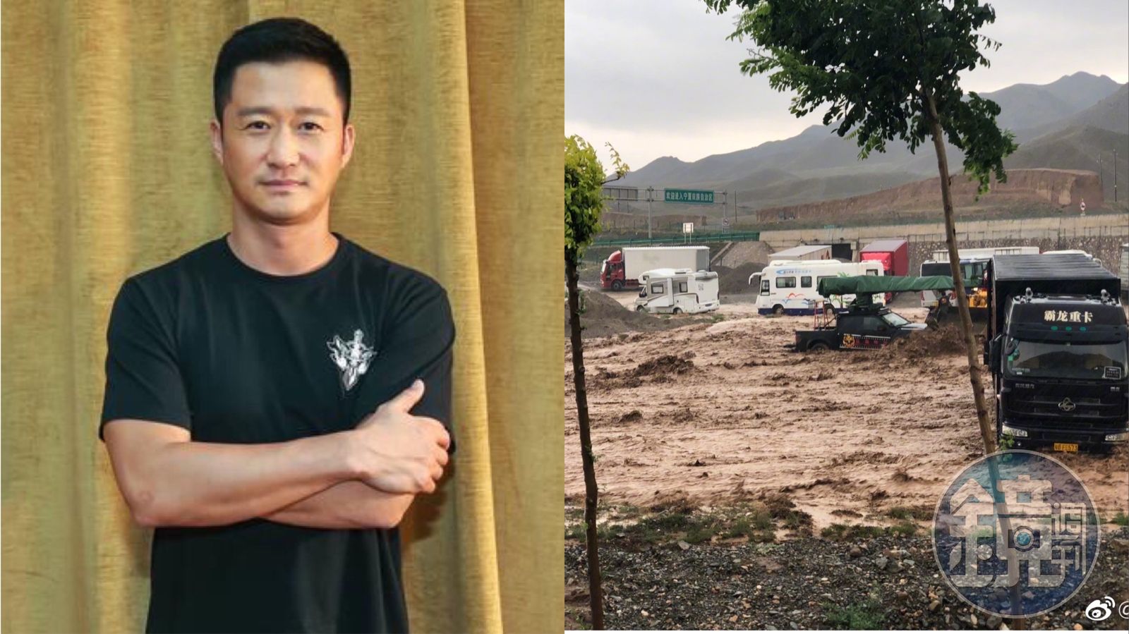 近日大陸地區多處發生暴雨,讓不少地方災情慘重,最近正在寧夏山區拍攝最新作品的吳京就在微博貼上拍攝現場慘遭山洪肆虐的慘況。畫面中,片場的大卡車幾乎都被山洪給淹沒,小型車輛更是整個車頭幾乎都看不到,一眼望去全是泥流山洪所到之處一片狼藉。就在算電影裡無所不能的吳京,也只能一臉無奈只能蹲坐在泥流旁,等待積水退去。幸好這山洪來得快去得快,不久就看到吳京拿著拿著鋤頭整地,準備繼續拍攝工作。