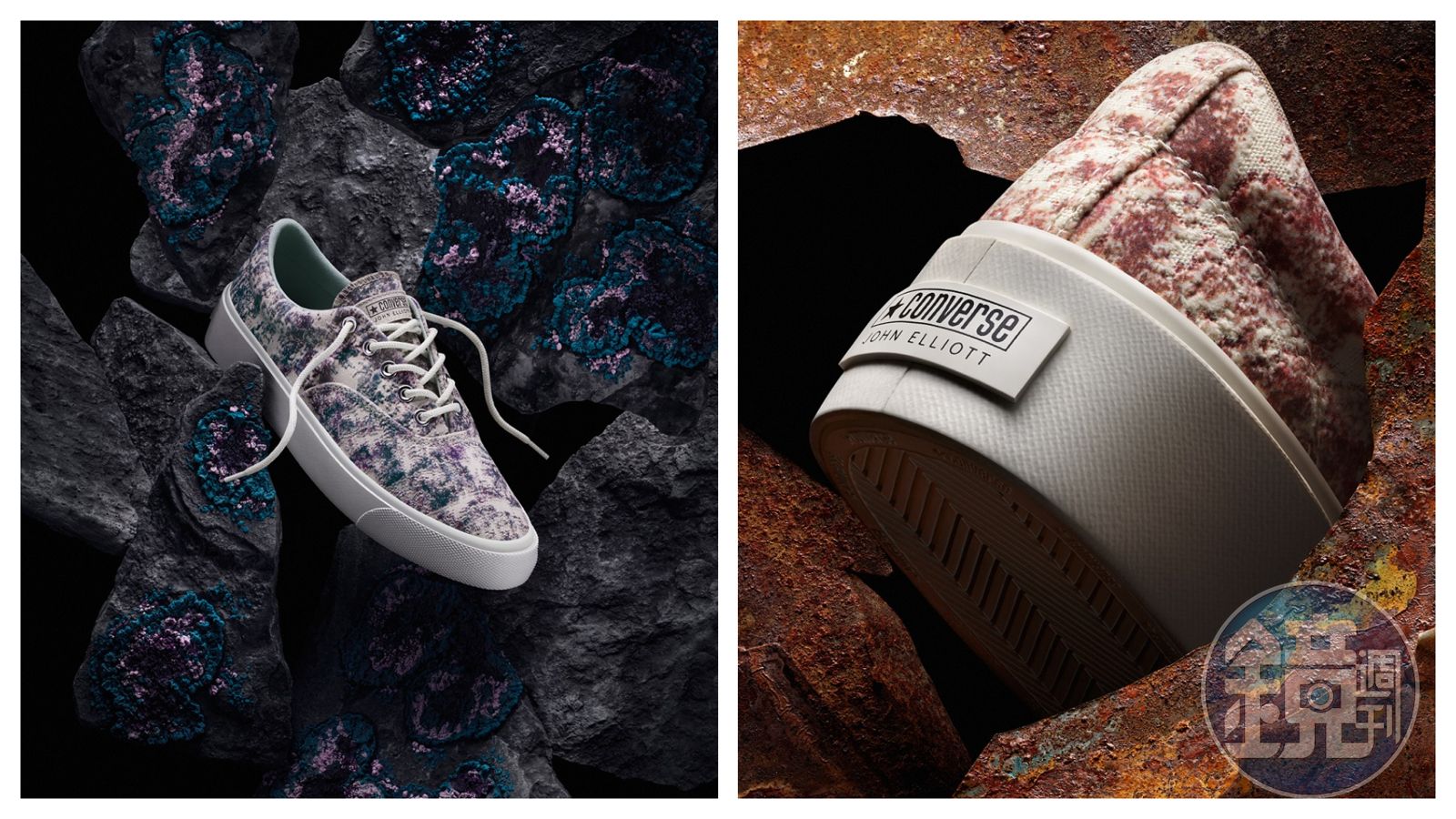 喜愛潮流的朋友,對John Elliott應該不陌生,擁有同名品牌的他, Kanye West、Justin Bieber可都是他的粉絲兼好友。這一次他與Converse合作,重塑經典Skidgrip鞋型,以帆布結合植絨和數位印刷,打造出銅銹斑駁感圖案,呈現復古的紋理。