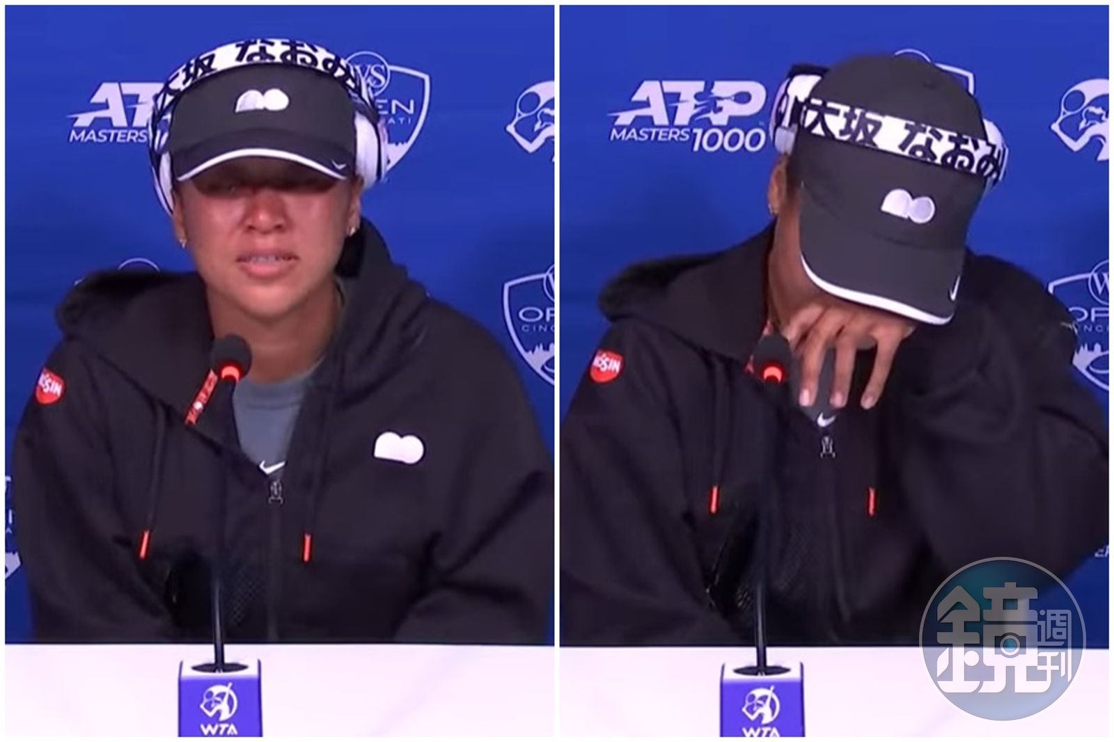 接下來輪到另一名記者提問時,大坂先往上面向天花板看,試圖壓抑住情緒,直到記者注意到她有些不對勁,大坂才低下頭擦拭眼淚,隨後暫時離開,主持人宣布記者會中斷。