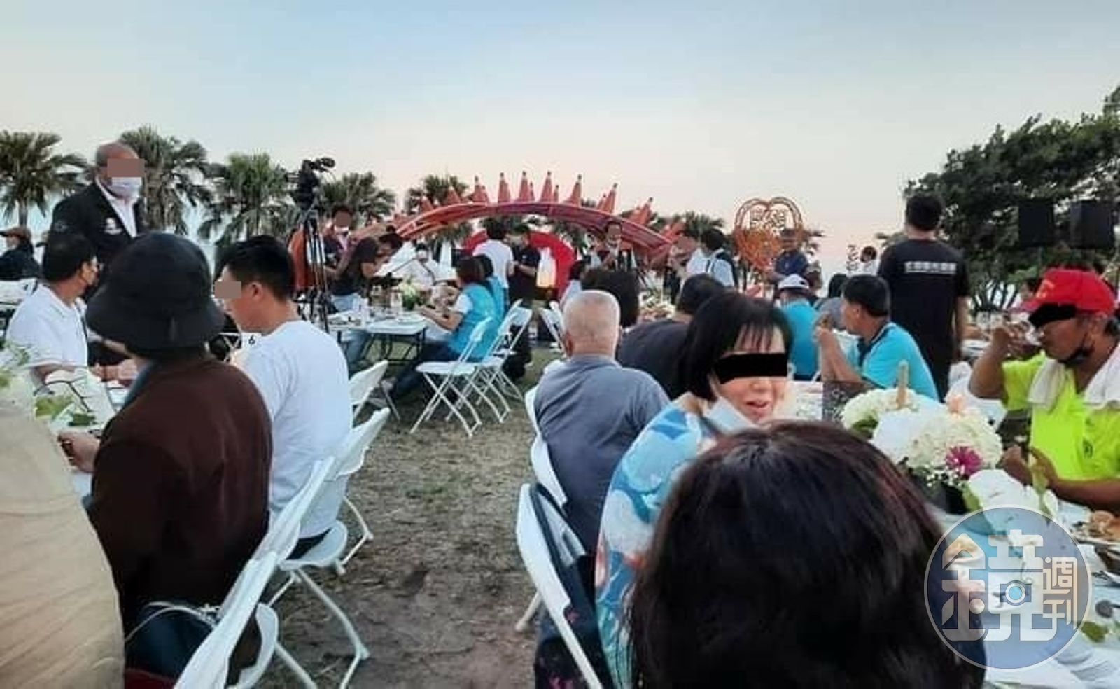 台東「南迴藝術季」開幕活動,近百人餐敘畫面引來網友批評。(翻攝自「就是礙台東」臉書社團)發布時間:2021.08.18 09:55 臺北時間