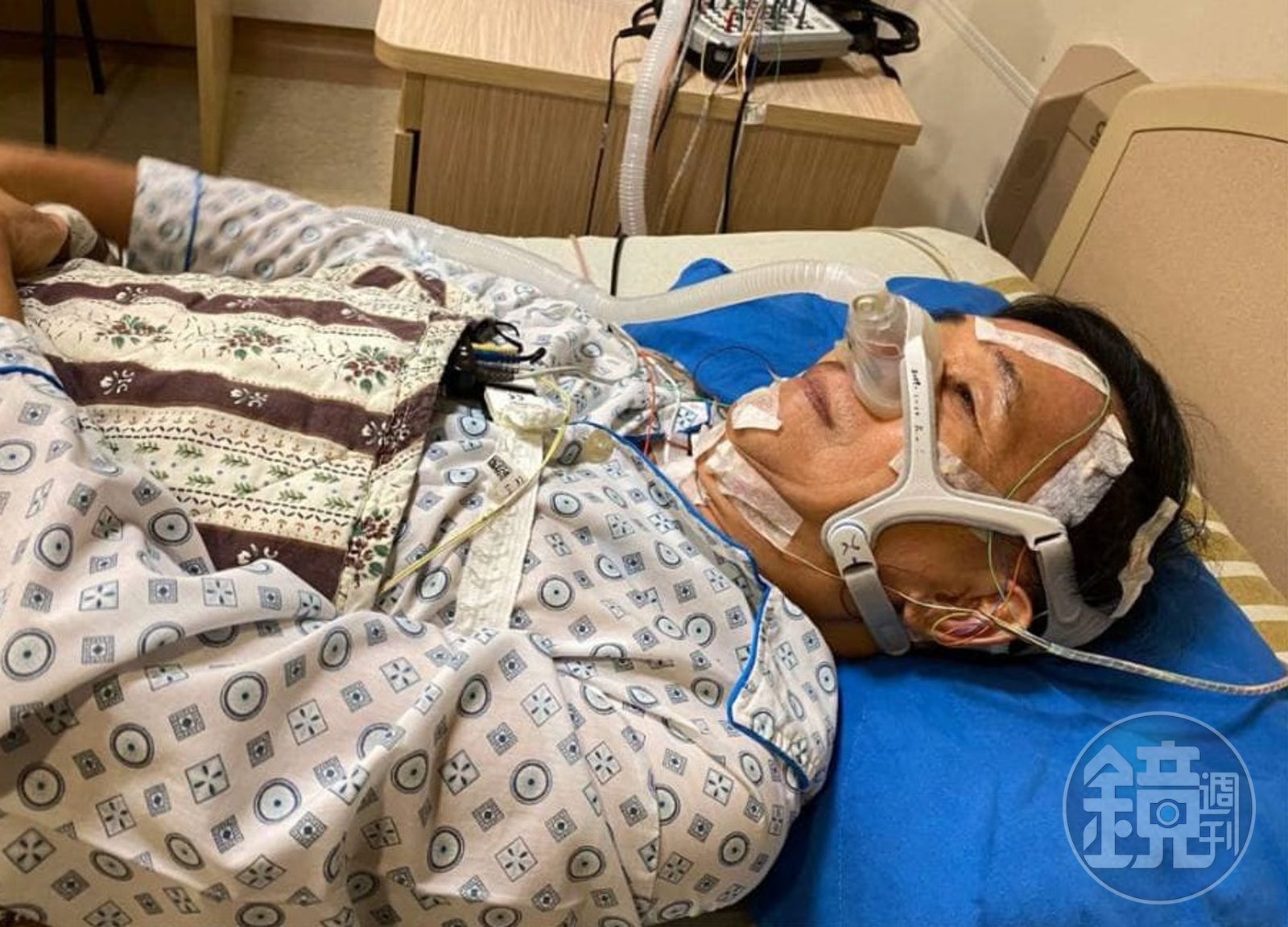 前總統陳水扁今(19日)在臉書PO出一張躺在病床上的照片,透露住院的訊息,還稱自己是「電線象人」,照片中他臉上戴著儀器,似乎在進行睡眠呼吸檢查,令許多支持者相當關心。