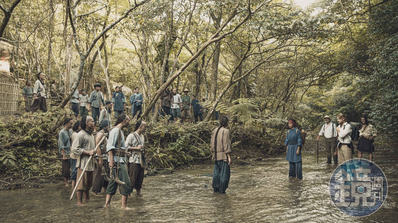 另外,劇中最大漢人聚落「柴城」,與漢人、原住民混血後代「土生仔」聚集的「社寮」,地理位置相近又背山鄰海,經文史顧問建議,好不容易找到吻合環境的沙岸搭景,但當地不僅夏熱冬寒,經常會因暴雨改變地貌。