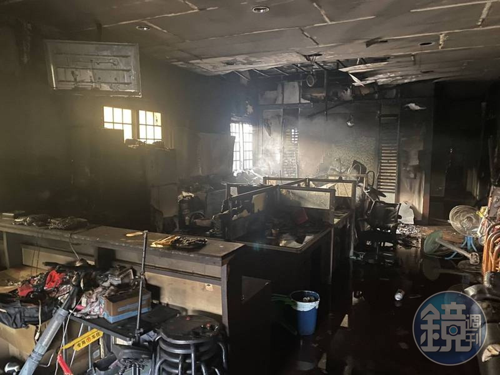 由於這家葬儀社是住家兼營業場所,一樓房間隔壁就是辦公室,後方則是倉庫,裡面堆滿了金紙、壽衣、紙紮的祭器等易燃物品,火勢蔓延相當迅速,很快的一樓幾乎陷入火海,而當時,葬儀社袁姓老闆與7歲女兒受困在一樓房裡。