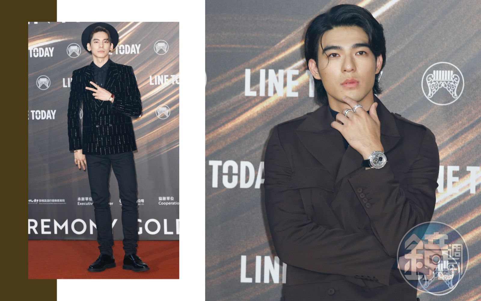除了Dior時裝,陳昊森也配戴了總金額約NT$27,280,000的Piaget珠寶、腕錶增加豪華感。而陳昊森的搭擋林柏宏則選擇了Saint Laurent晚宴服,並搭配Cartier珠寶、腕錶,林柏宏選擇的服裝夠閃亮,「舞台感」更重,一頂紳士帽更是畫龍點睛,但因西裝外套夠浮誇了,珠寶選擇上要麼更誇張,不然或許可調轉另一個方向,「收一點」讓主角只有一個重點,不要太花。