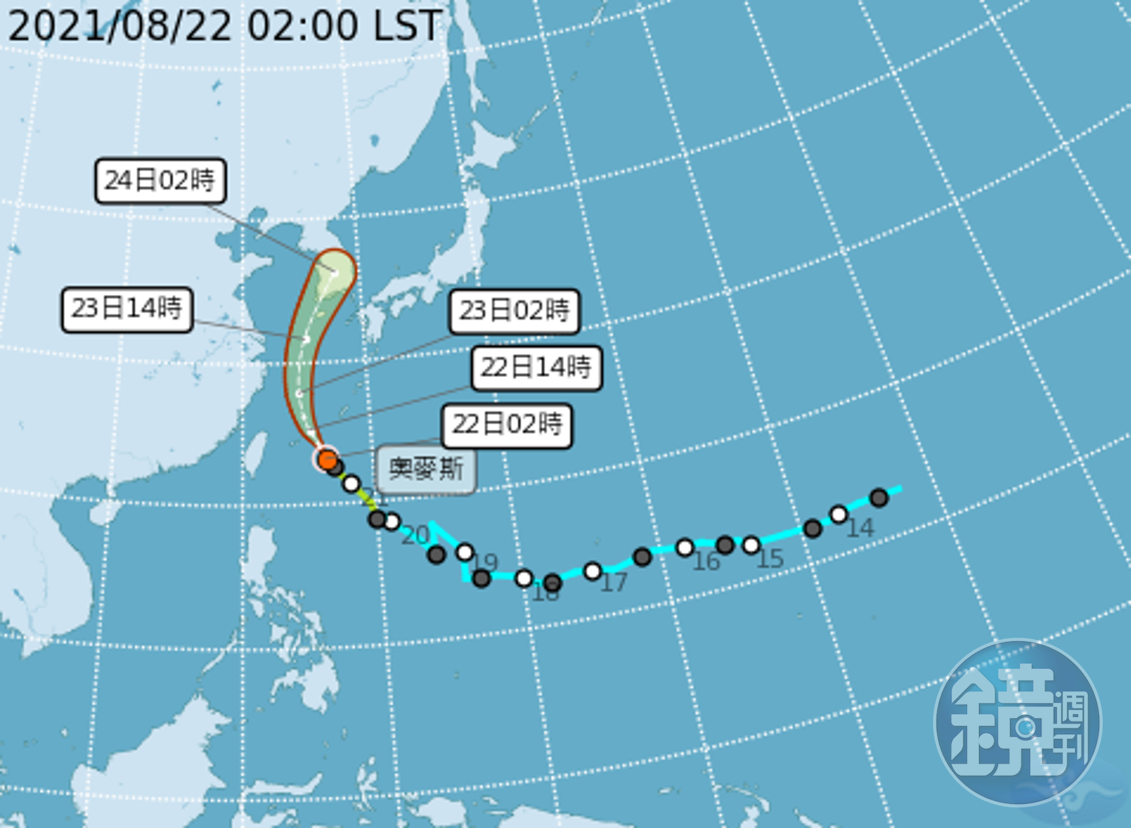 中央氣象局預報員官欣平說明,奧麥斯路徑從琉球西邊海域通過,未來朝日韓移動,今天受外圍水氣影響,東半部局部降雨發生,不過主要的降雨仍以午後熱對流為主,西半部多雲到晴,午後有局部短暫雷陣雨,各地山區仍有局部大雨發生的機率。