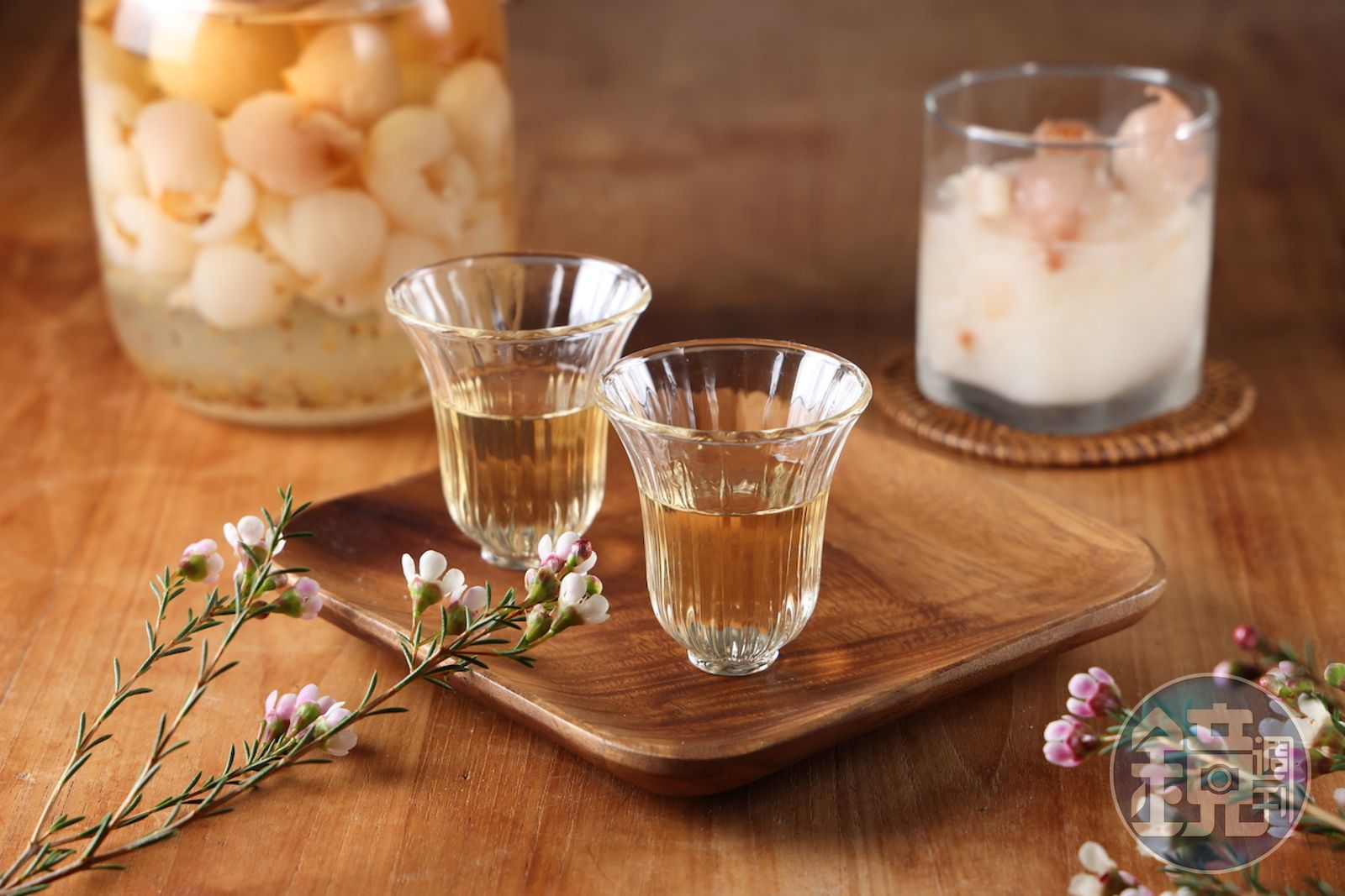 我們站在廚房裡說話,陳穎抱著今年6月底製作的「浸泡桂花荔枝酒」說:「這是我最期待的一瓶自製水果酒了。」她打開荔枝酒的瓶蓋,蜜般的甜味飄了出來,我們用淺淺的中式茶杯裝著喝,杯子才靠近鼻尖,那香氣像是把臉埋進一大把豔紅色玫瑰花束般濃郁撲來。入口,好香好甜啊。用荔枝入酒,酒液沖走汁水淋漓的甜膩,賦予略帶渾厚的深度,彷彿荔枝天生就該拿來做酒。