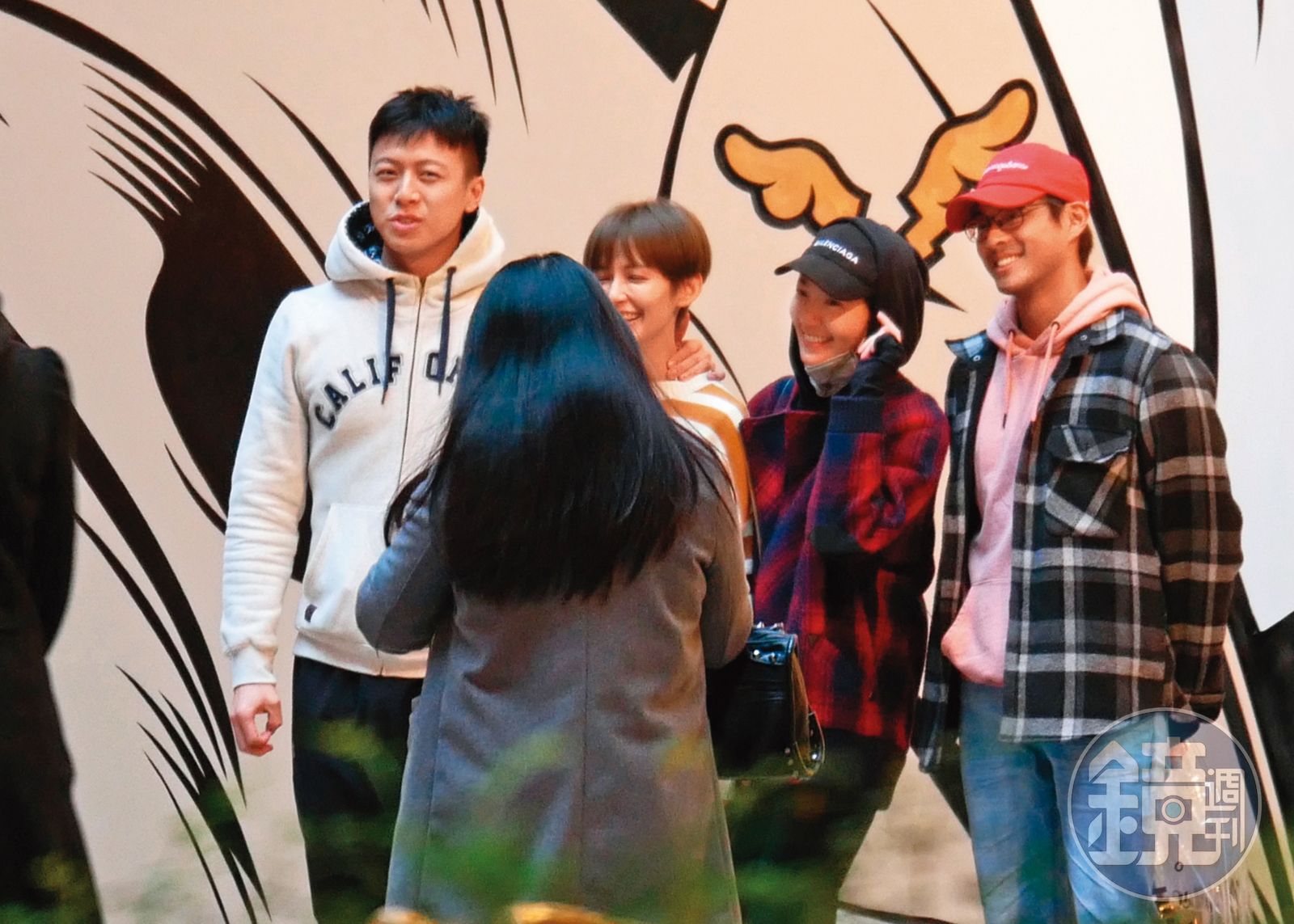 郭雪芙(右二)與孫其君(右一)在下戲後互動頻繁,還穿起情侶裝與友人聚首。發布時間:2021.08.25 05:58 臺北時間