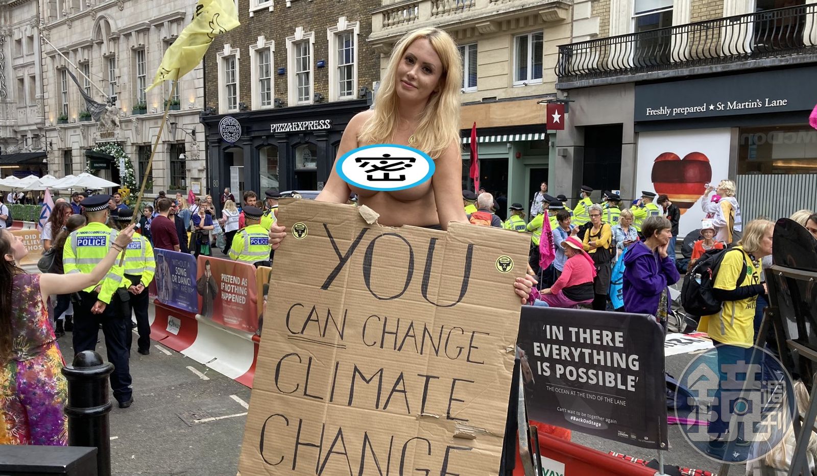 綜合外媒體報導,該裸上空上街頭的正妹安赫絲特(Laura Amherst),現年31歲,為空中大學政治系女學生,昨為了「反抗滅絕」上街頭示威,由於安赫絲特全裸上半身,僅用2張「反抗滅絕」的貼紙遮住2點,秒掀起現場路人及其他示威者的驚訝目光及熱烈掌聲。