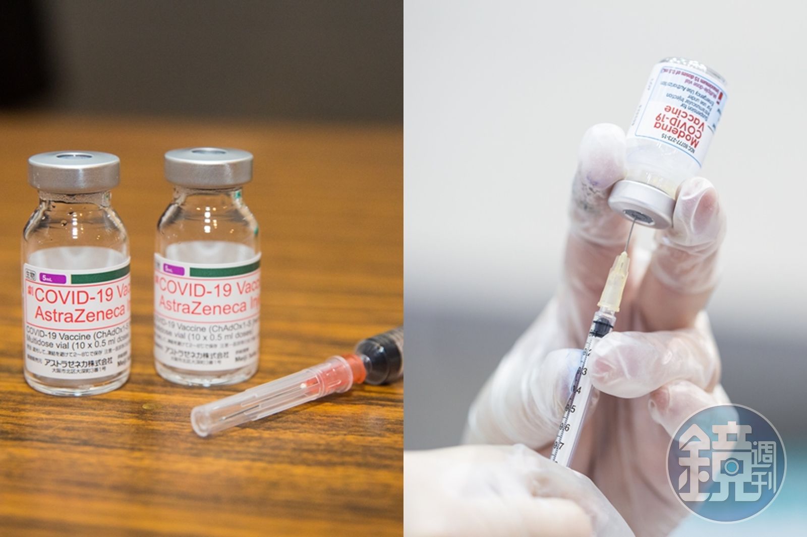 有消息指出,明後兩天將各有一批AZ(左圖)和莫德納(右圖)疫苗抵台。(本刊資料照)發布時間:2021.08.26 19:47 臺北時間