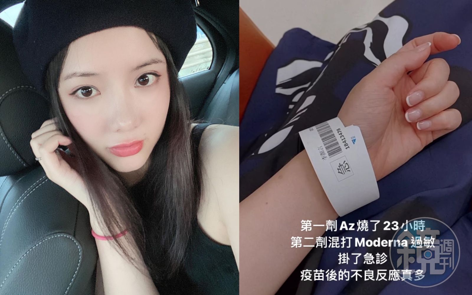 楊奇煜的護理師老婆言言日前第二劑莫德納發生過敏反應赴醫急診。(翻攝自言兒IG)發布時間:2021.08.26 13:14 臺北時間