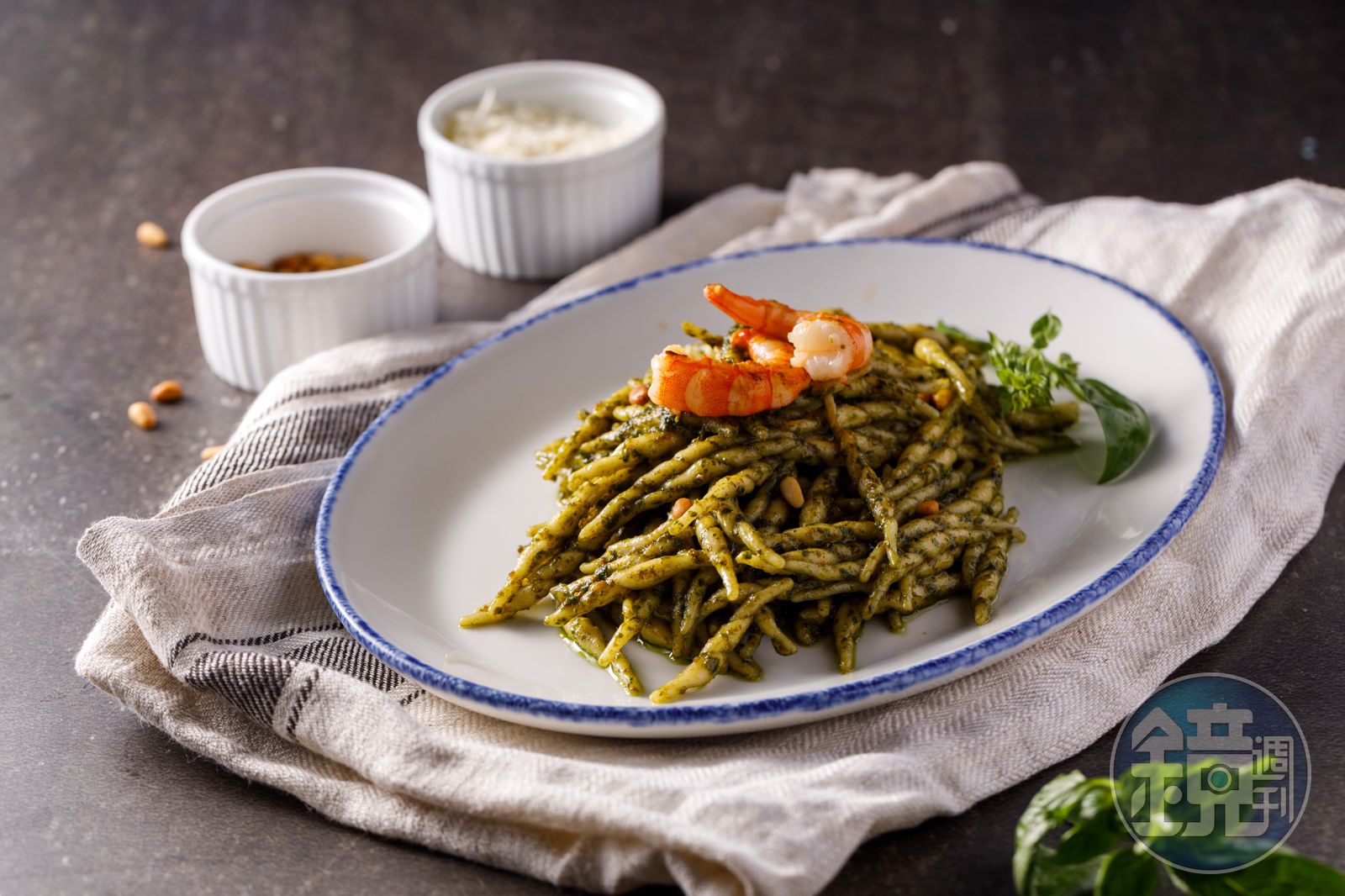「簡配版自由式佐青醬義大利特飛麵」麵體彈牙,青醬氣味悠長。(1,080元/組,6人份,無附鮮蝦、松子及新鮮羅勒)發布時間:2021.08.29 08:00 臺北時間