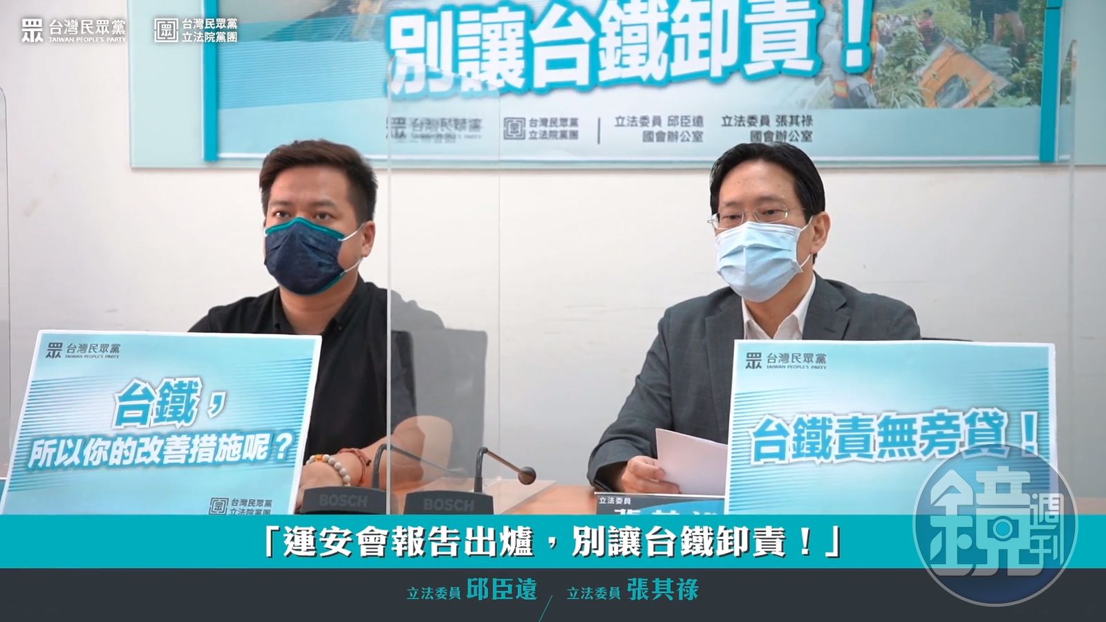 民眾黨指出,台鐵若對運安會的改進建議事項置之不理,運安會也束手無策,立委邱臣遠呼籲,政府應該要將台鐵的改善措施、進度公布於網站上,供全民監督。