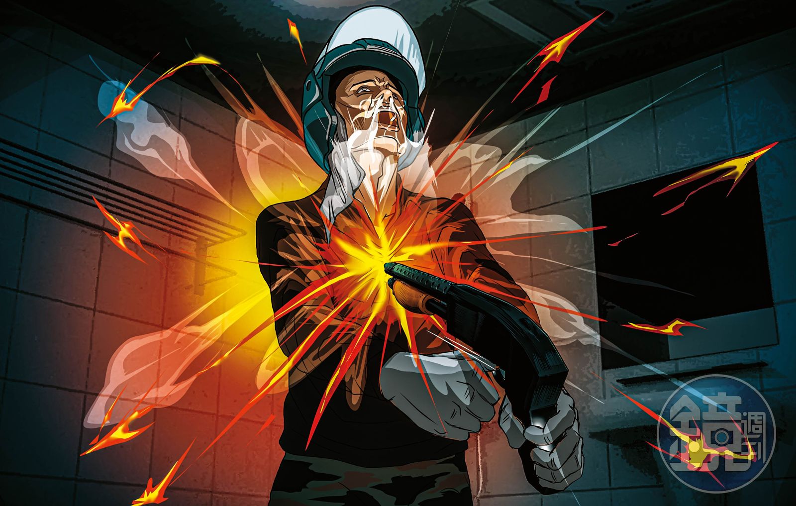 員警不敢冒進,待在樓梯間與歹徒對峙,不久,三樓傳出不明聲響,接著開始冒煙,員警見狀立即往下撤退,並通知消防隊到場滅火,火勢撲滅後,警方上三樓查看,結果發現一具焦屍,身旁還有一把霰彈長槍、一把制式手槍。