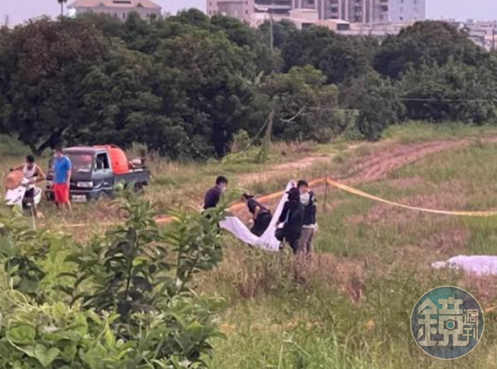 據了解, 28日晚間6點多該菜園主人前往正準備噴藥,發現在草叢中有異物,靠近一看才發現竟是斷成兩截的屍體,適逢農曆七月,讓菜園主人嚇得說不出話,只好趕緊報警。