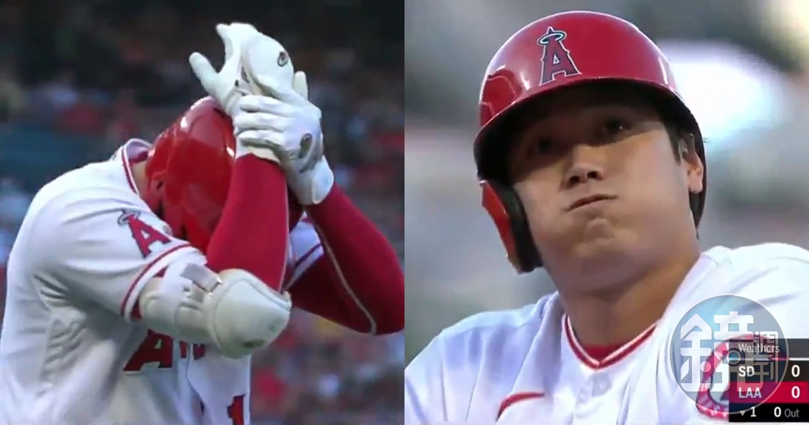 大谷翔平遭擊中右手腕。(取自@MLBONFOX推特)